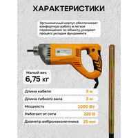 Глубинный вибратор для бетона ВЭ-25 с УЗО кабель 3м, 1000Вт, 220В гибкий вал 2м наконечник в комплекте используют практически на всех объектах строительства. С помощью электроприводного глубинного вибратора уплотняют бетонные смеси во время заливки железобетонных изделий и конструкций.