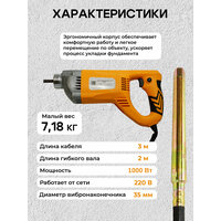 Глубинный вибратор для бетона ВЭ-35 с УЗО кабель 3м, 1000Вт, 220В гибкий вал 2м наконечник в комплекте используют практически на всех объектах строительства. С помощью электроприводного глубинного вибратора уплотняют бетонные смеси во время заливки железобетонных изделий и конструкций.