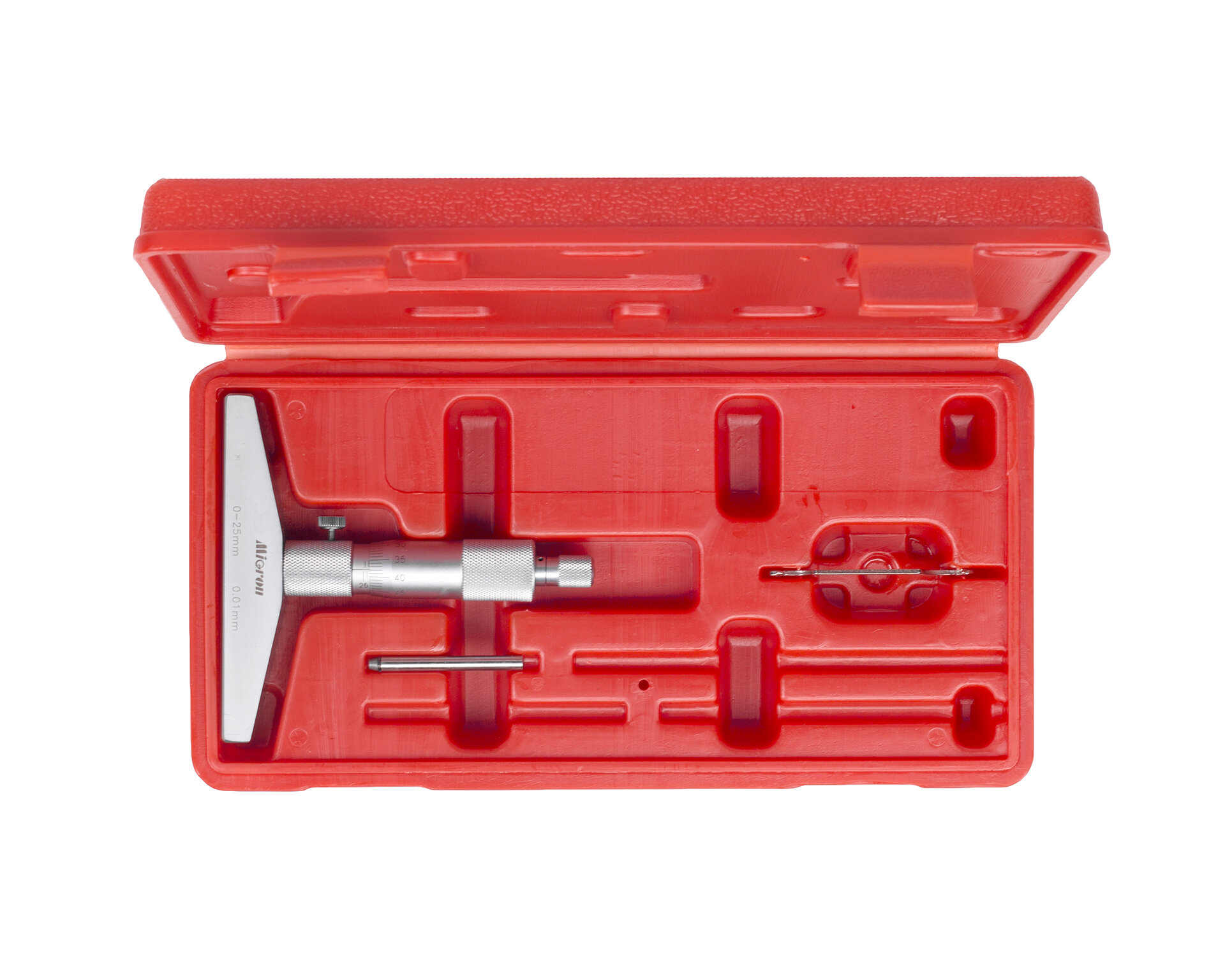 Глубиномеры микрометрические типа ГМ предназначены для измерения глубины пазов, отверстий и высоты уступов. Диапазон измерения обеспечивает набор сменных удлинительных стержней, оснащенных твердым сплавом. Отсчет осуществляется по шкалам стебля и барабана микрометрической головки. Для обеспечения постоянства измерительного усилия микрометрическая головка снабжена трещоткой. Погрешность микрометрической головки ± 0,003 мм. Глубиномер не требует повторной установки на ноль после смены удлинительных стержней. Глубиномеры микрометрические типа ГМ соответствуют требованиям технической документации фирмы-изготовителя, тип средства измерений утвержден Росстандартом и внесен в Государственный реестр средств измерений РФ.