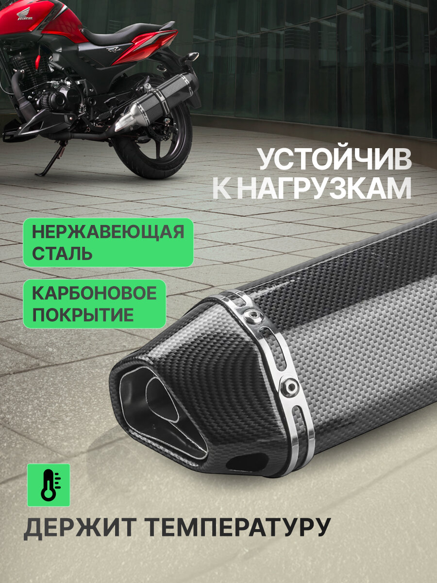 Этот глушитель, изготовленный из высококачественной нержавеющей стали, представляет собой идеальное сочетание надежности и эстетики. С диаметром соединения от 38 до 51 мм, он универсален и подходит для широкого спектра мотоциклов и квадроциклов.