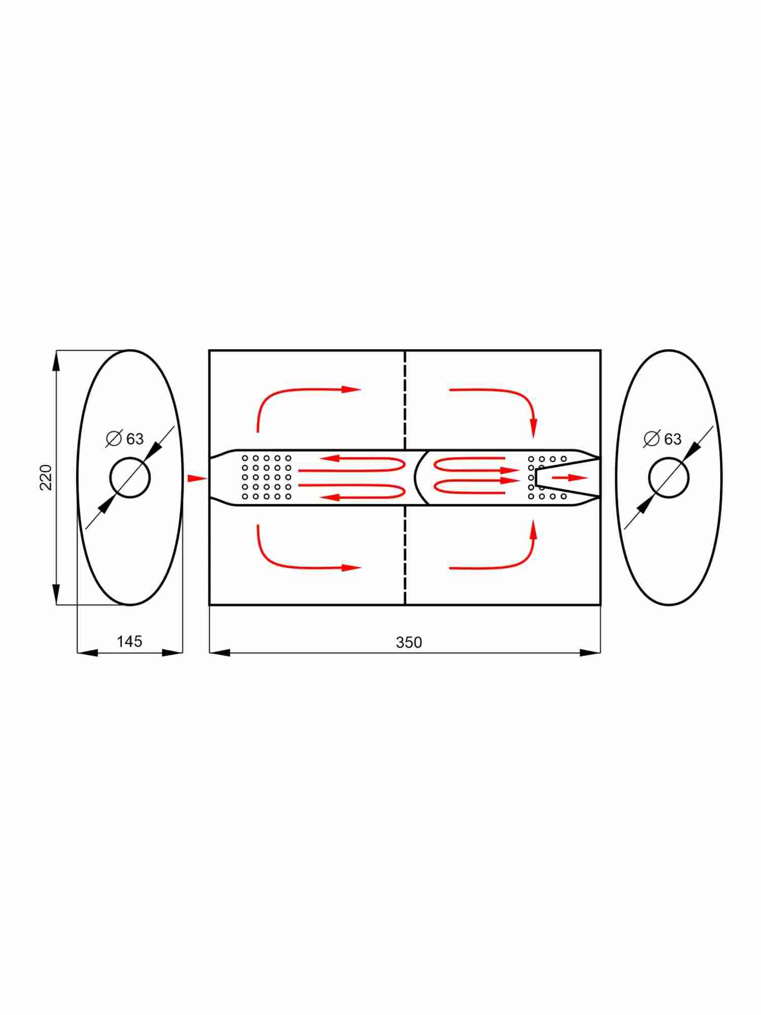 Глушитель «belais» тихий, вход Ø63 мм - выход Ø63 мм, овал 145*220 мм, длина 350 мм (нержавеющая сталь) belais #17590