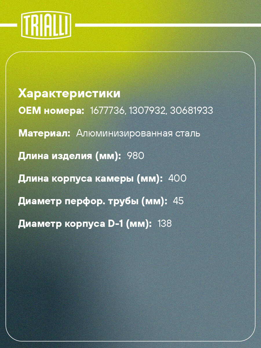 Глушитель для автомобилей Ford Focus II (05-) 1.4i/1.6i дополнительный (резонатор) (алюминизированная сталь) EAM 1001 TRIALLI: сравнение цен, характеристики, фото, актуальное наличие и цены.