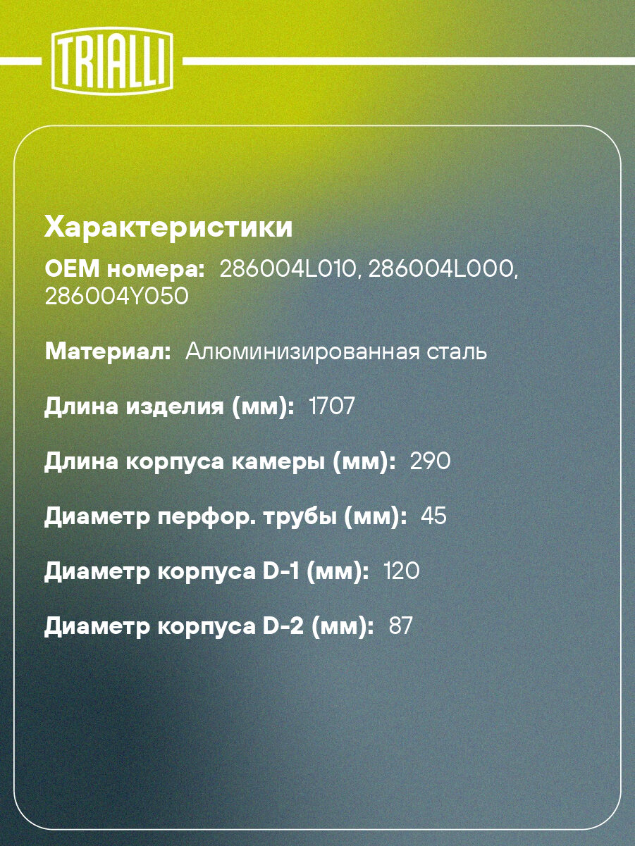 Глушитель для автомобилей Hyundai Solaris (10-)/Kia Rio (11-) дополнительный (резонатор) со стронгером (алюминизированная сталь) EAM 0808 TRIALLI: сравнение цен, характеристики, фото, актуальное наличие и цены.
