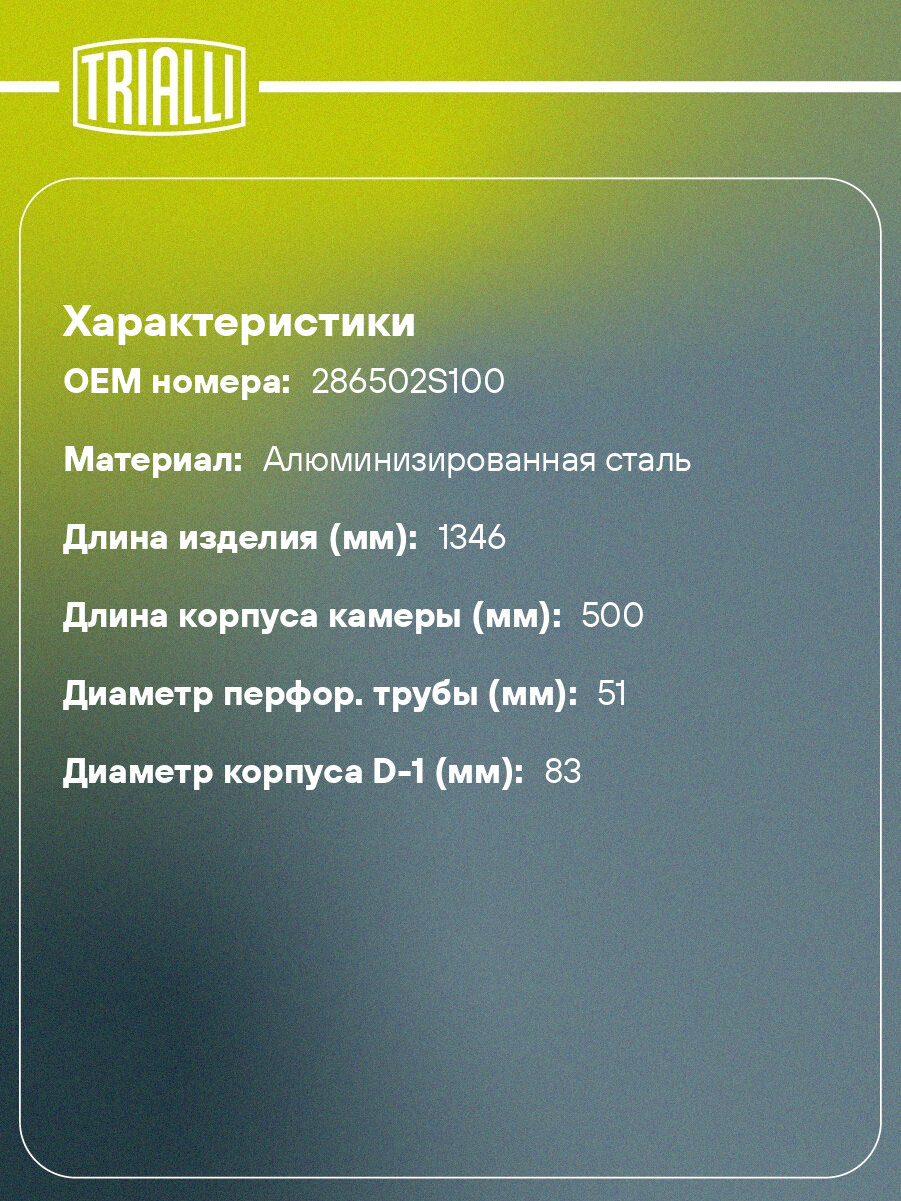 Глушитель для автомобилей Kia Sportage III (10-)/Hyundai ix35 (10-) 2.0i дополнительный (резонатор) L=1346 одна "банка" (алюминизированная сталь)