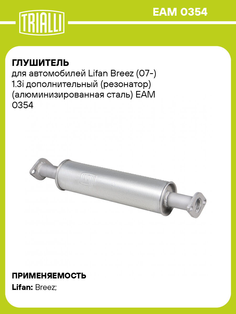 Глушитель для автомобилей Lifan Breez (07-) 1.3i дополнительный (резонатор) (алюминизированная сталь)