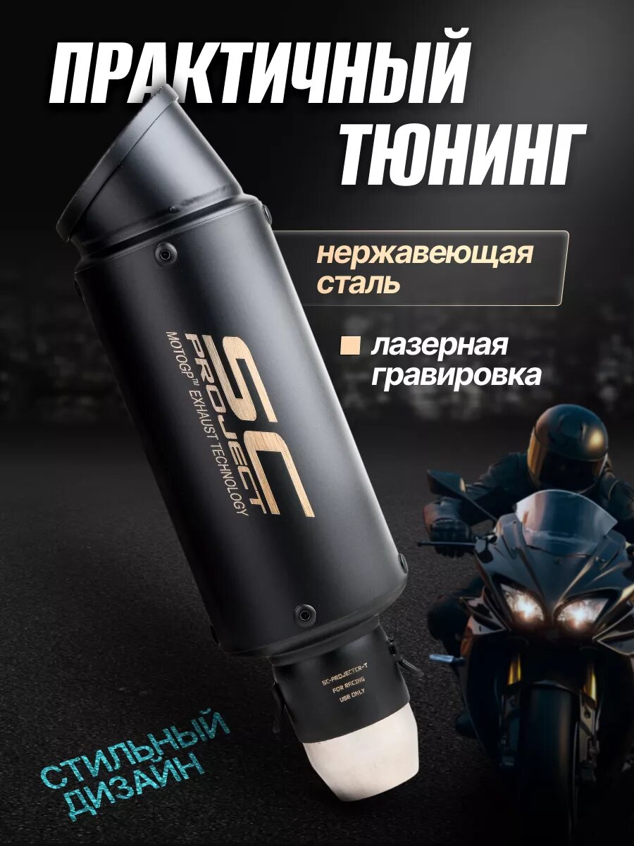 Посмотрите видеообзор одним нажатием прямо в карточке товара! Прямоточный глушитель покраска тотал блэк — аксессуар для мотоцикла, мопеда, питбайка, эндуро, скутера или квадроцикла. Высококачественная реплика "СК проджект" (SC PROJECT). Для любой модели мототехники, имеющей выхлопную трубу диаметром 35 -51 мм, будь то классический, кроссовый, спорт или пит байк. В комплект входят: адаптер для труб 36-51 мм, хомут, крепежные элементы, две пружины для фиксации. Банка имеет общую длину 245 мм (24,5 см), длину тела 180 мм (18 см) и ширину 102 мм (10,2 см). Изготовлен из высококачественного карбонового материала и нержавеющей стали. Дизайн мото банки подчеркнет вашего железного коня. Прямоток оснащен новейшими разработками децибел-киллеров, обеспечивая этим басистый, сочный звук выхлопа. Предлагая приятный, урчащий, почти шепчущий звук. Каждая банка поставляется в индивидуальной упаковке, тщательно проверяется перед отправкой. Наш магазин сотрудничает только с ответственными производителями, предлагающими высококачественные товары. Приобретая выхлопной глушитель у нас, Вы можете быть уверены, что получите продукт, который превзойдет Ваши ожидания. Этот и другие аксессуары для мотоцикла Вы можете найти товарах бренда WTS TUNING перейдя во все товары.
