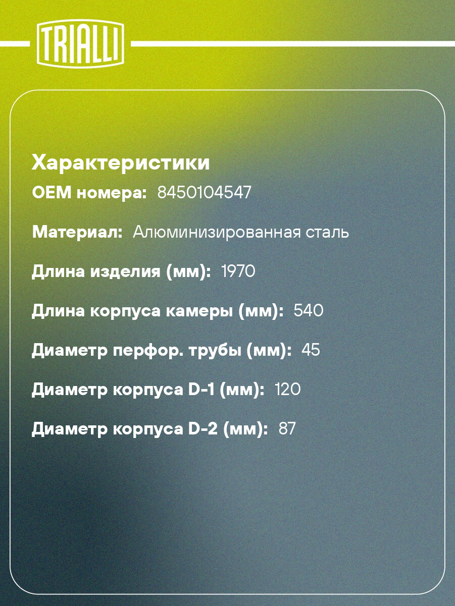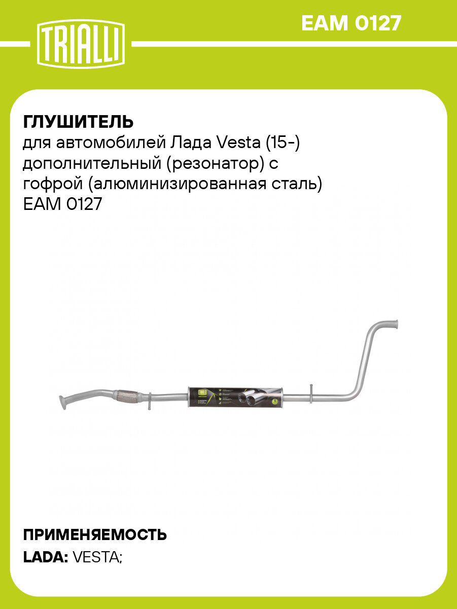 Глушитель для автомобилей Лада Vesta (15-) дополнительный (резонатор) с гофрой (алюминизированная сталь) EAM 0127 TRIALLI: сравнение цен, характеристики, фото, актуальное наличие и цены.