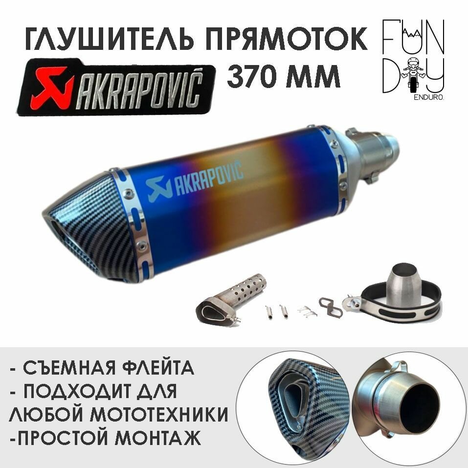 Глушитель имеет длину 370 мм, что позволяет легко его устанавливать и обслуживать. В комплект входят все необходимые компоненты для установки глушителя, включая адаптер для труб диаметром 31-55 мм, хомут, крепёжные элементы и пружины для фиксации. Глушитель также оснащён съёмным db киллером (флейтой), который позволяет регулировать уровень шума.