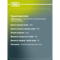 Глушитель для автомобилей Лада 1119 Kalina основной прямоточный (алюминизированная сталь) T-Sport