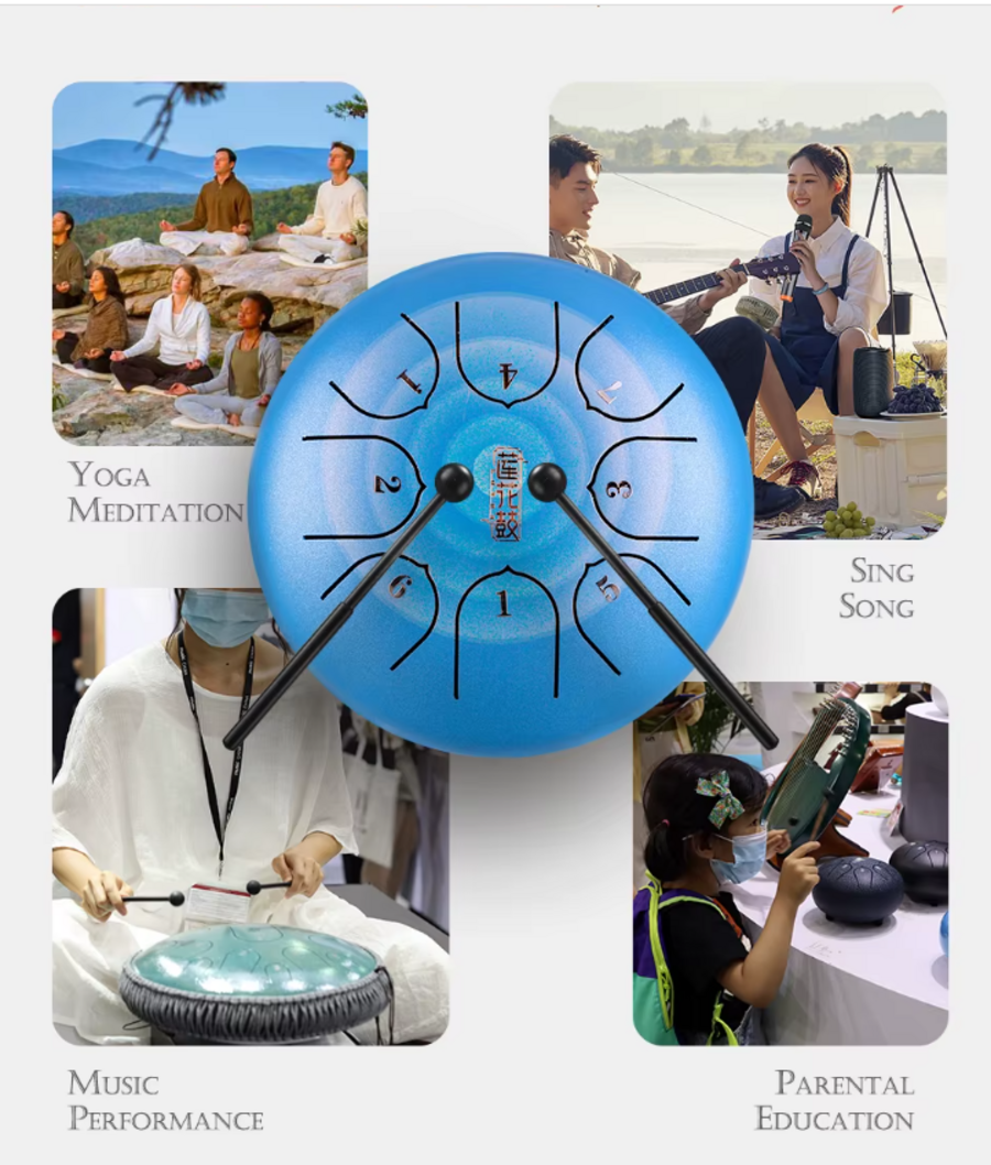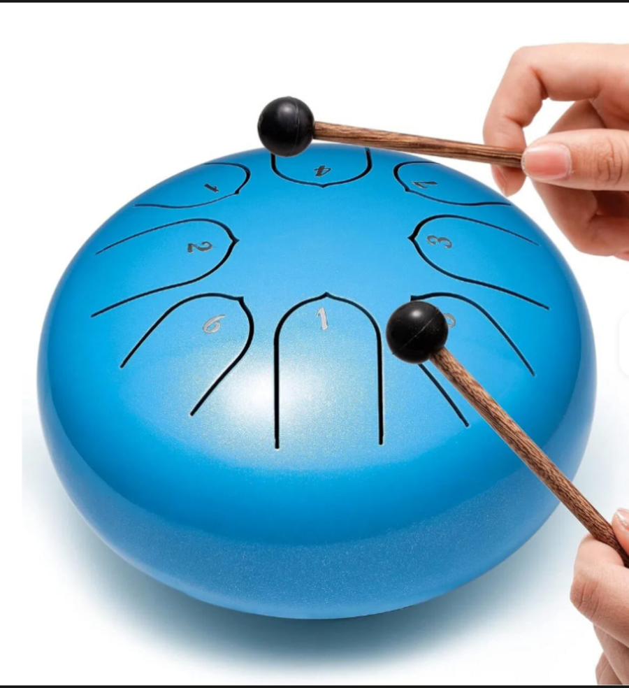 Играть вы можете как палочками, так силиконовыми напалечниками, которых 4 штуки в комплекте. С нашим инструментом можно спокойно путешествовать и передвигаться, так как в комплекте идет чехол из плотной хлопковой ткани.