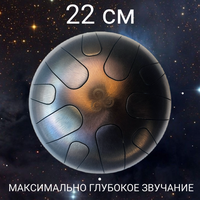 Диаметр: 22 см Количество нот-лепестков: 10 сверху Покрытие - художественный обжиг-воронение. Вес: 1,7 кг Палочки 3 шт. (разной степени мягкости) и удобная сумочка на плечо в комплекте. Пожизненная гарантия от мастера (Москва)!