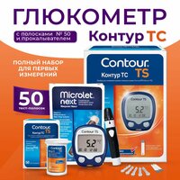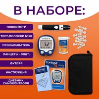 - суперточный глюкометр Контур ТС (набор с ланцетами и чехлом)