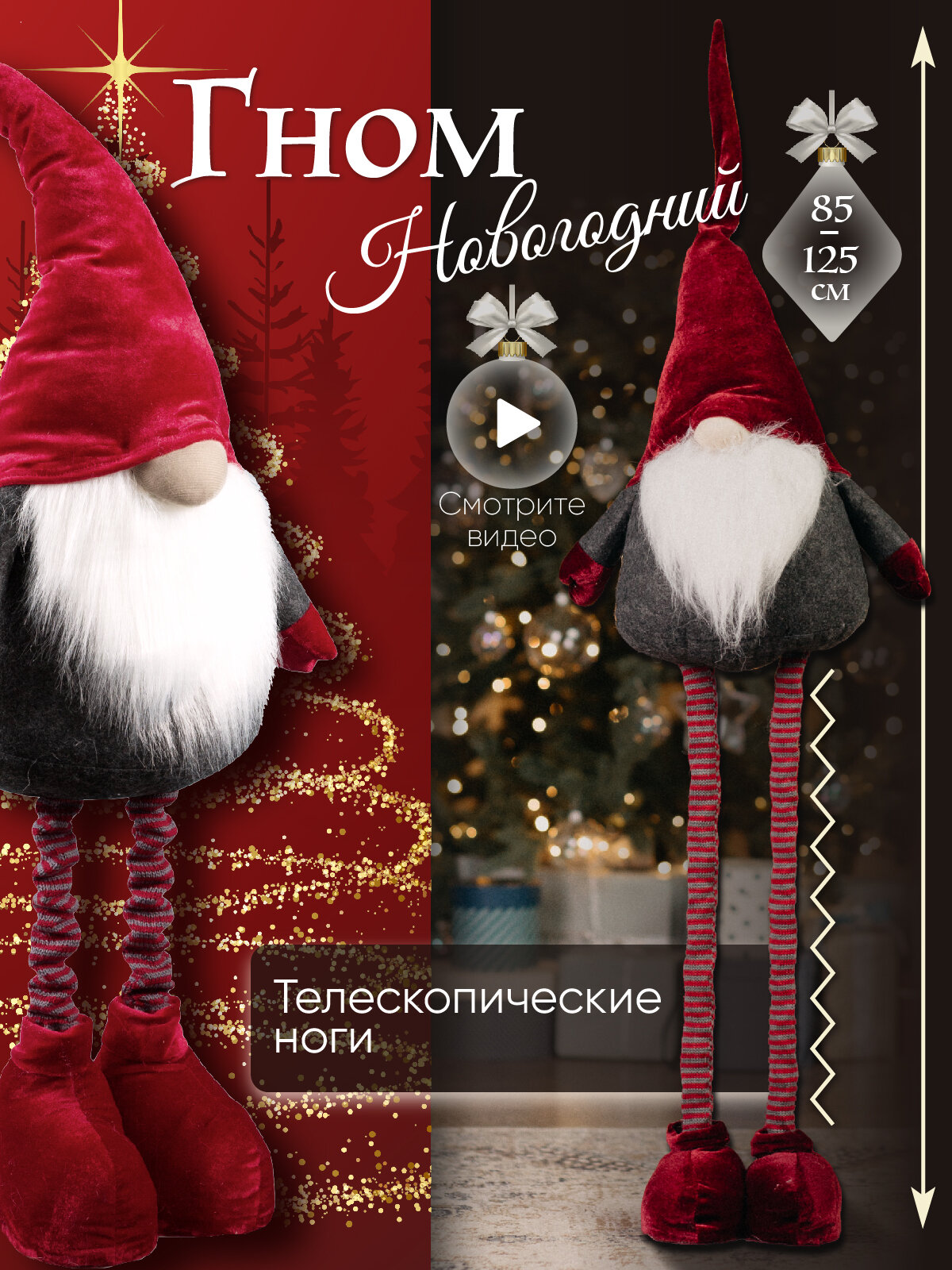 Гном новогодний под елку с шапкой, телескопический, высота 85-125 см, фигурка с длинными ногами, бордовый, Ами мебель: сравнение цен, характеристики, фото, актуальное наличие и цены.
