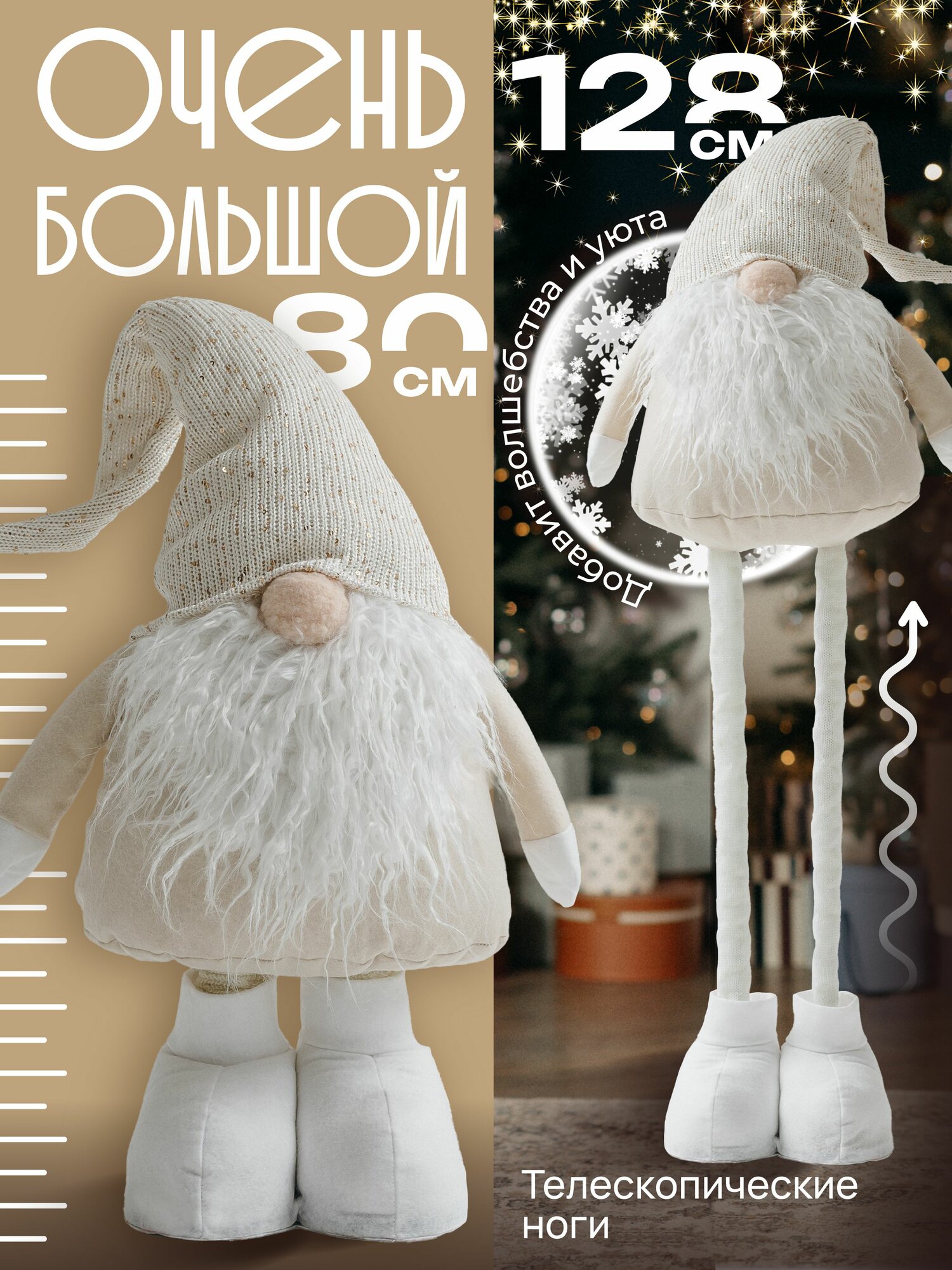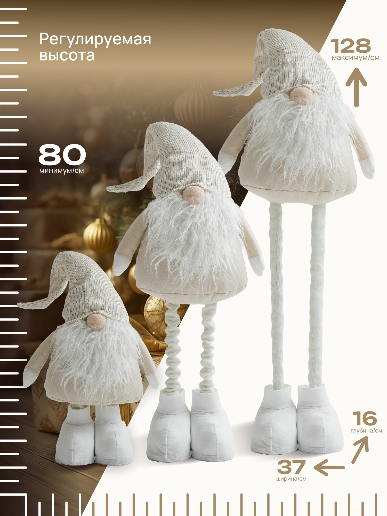 Гном новогодний под елку, телескопический, высота 80-128 см, фигурка с длинными ногами, цвет белый золотой, Ами мебель: сравнение цен, характеристики, фото, актуальное наличие и цены.
