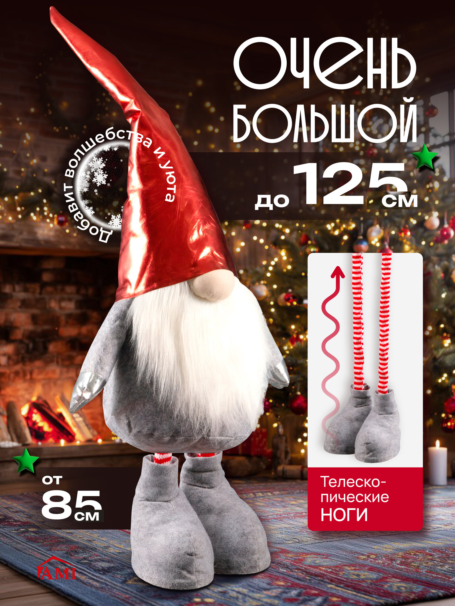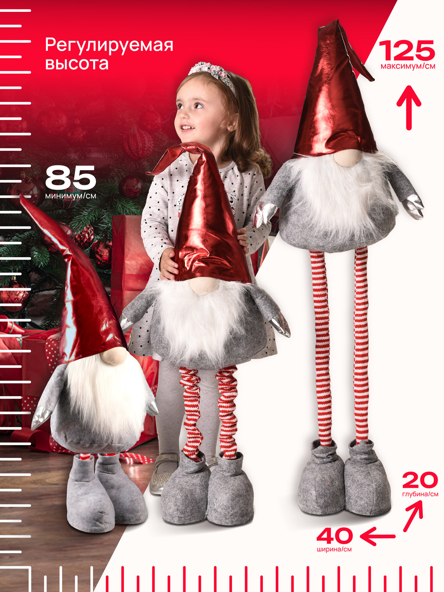 Купить Гном новогодний под елку, телескопический, высота 85-125 см, фигурка с длинными ногами, серый, красный, Ами мебель с доставкой по всей России. Гном новогодний под елку, телескопический, высота 85-125 см, фигурка с длинными ногами, серый, красный, Ами мебель: сравнение цен, характеристики, фото, актуальное наличие и цены.