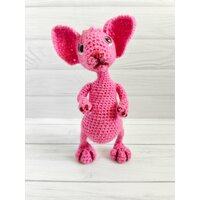 Игрушка выполнена в ярком розовом цвете, что придает ей оригинальность и выделяет на фоне других сувениров.