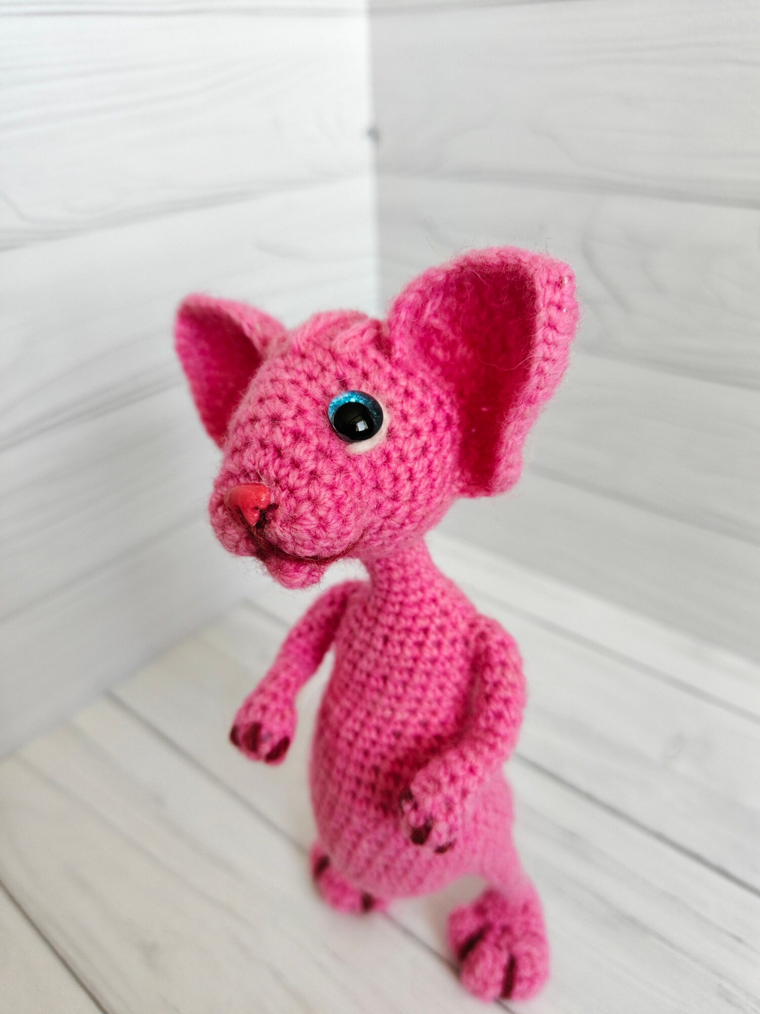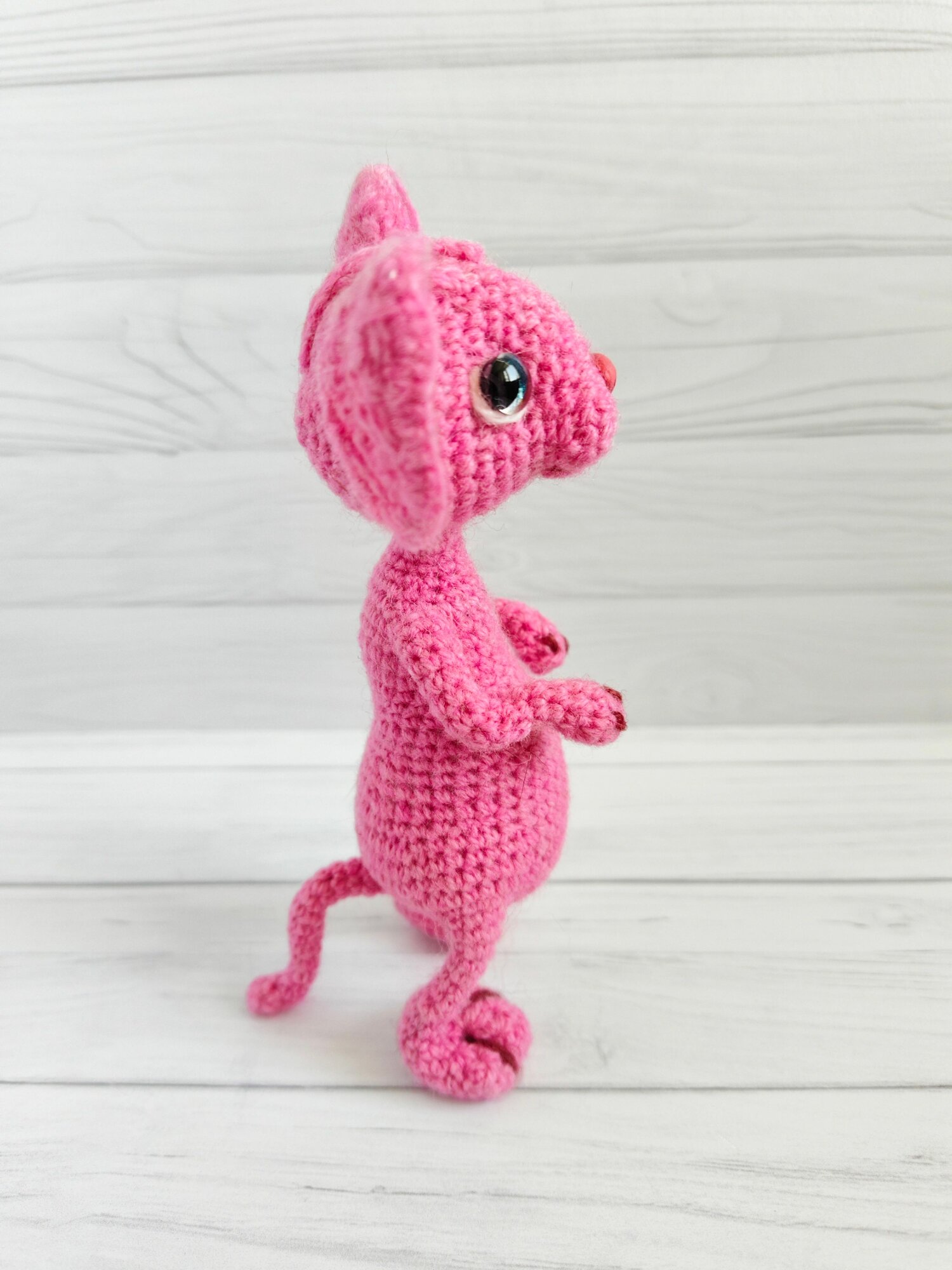 Гнущаяся вязаная игрушка на каркасе "Розовый кот-сфинкс" - это уникальное произведение искусства, созданное вручную. Авторская работа от бренда ЯнаART, который зарекомендовал себя на рынке сувениров и интерьерных украшений.