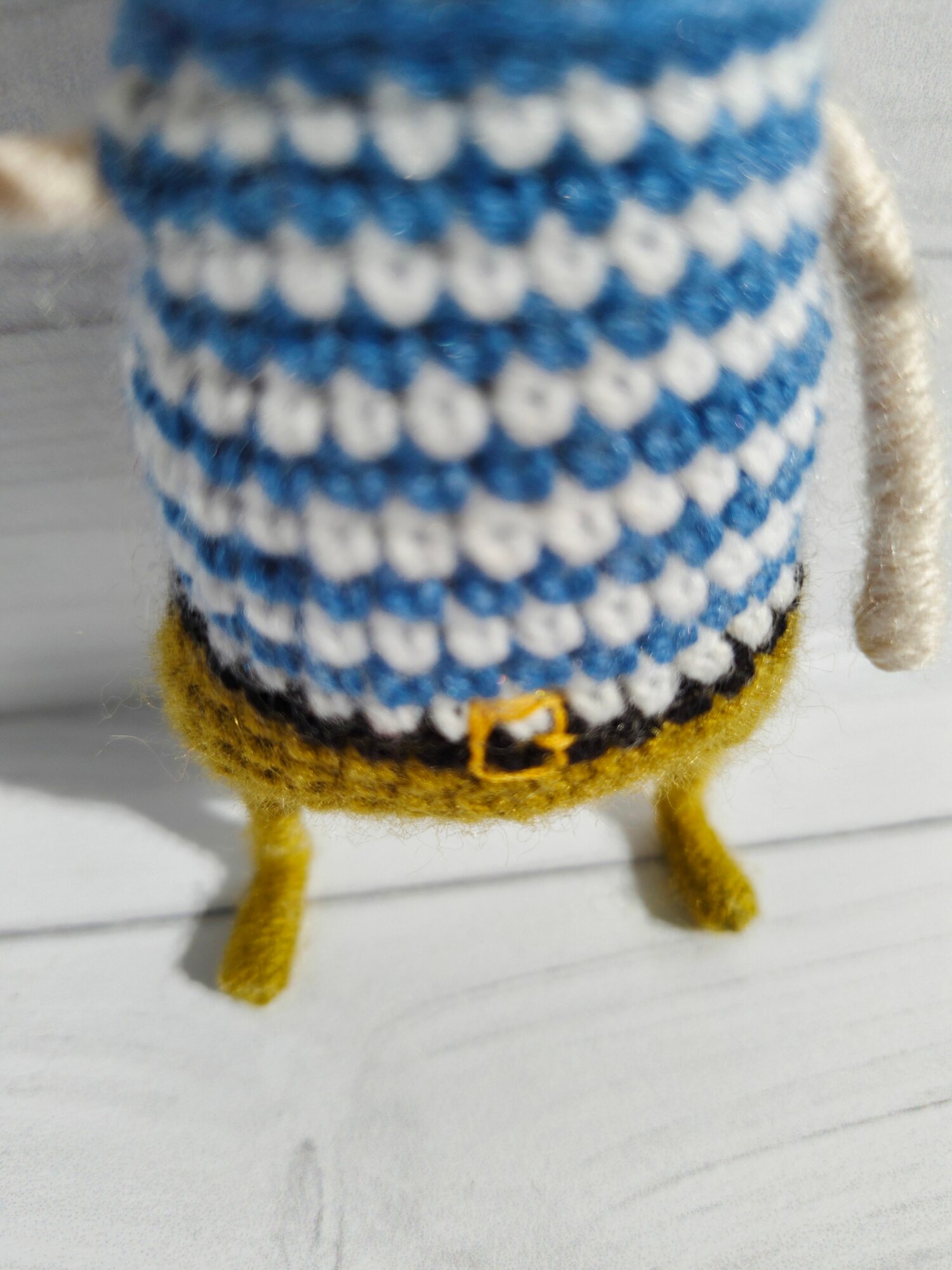 Игрушка связана крючком, что придает ей особую мягкость и уют. На каркасе, что позволяет рукам и ногам гнуться, делая игру еще более интересной и разнообразной.