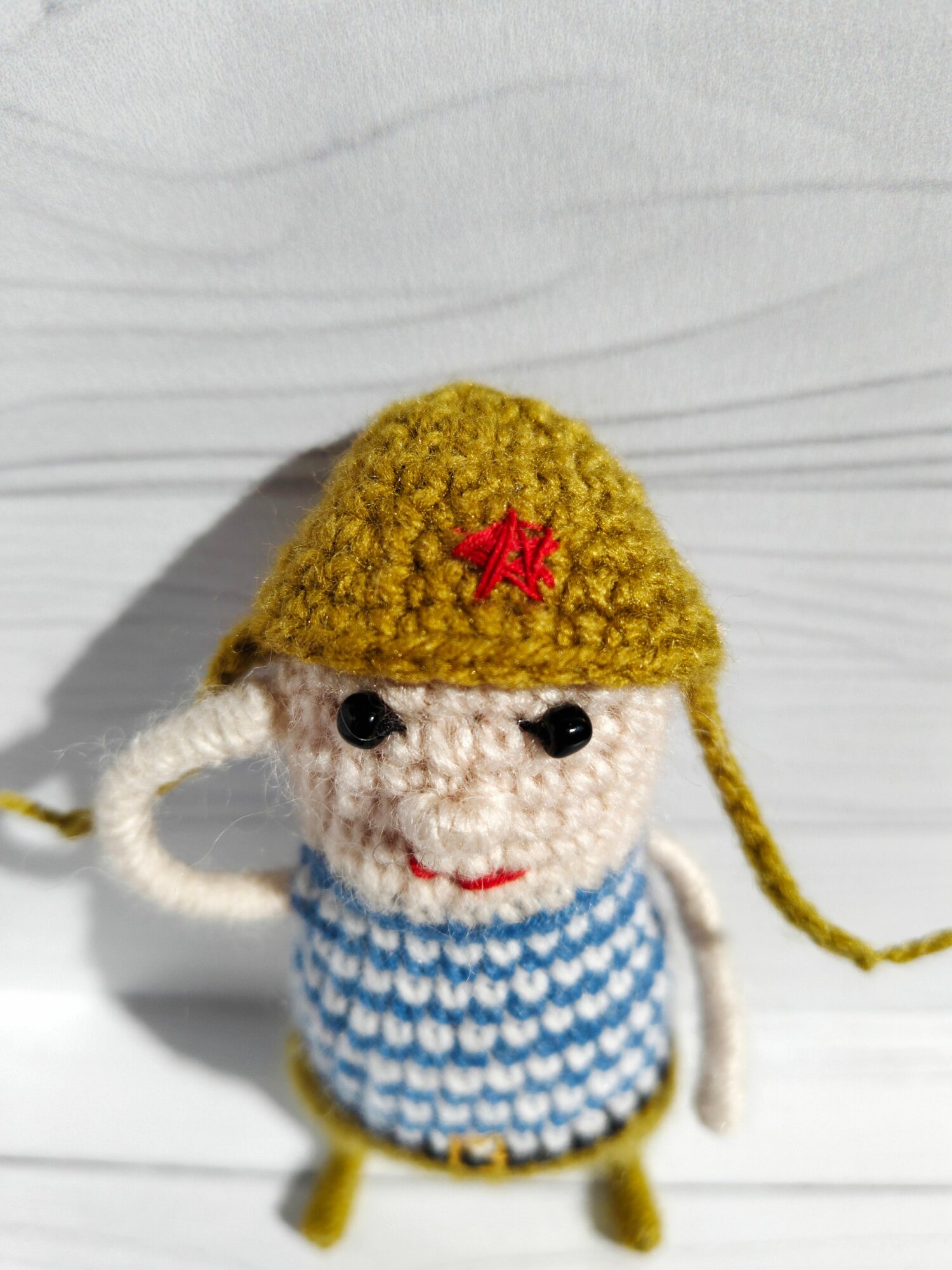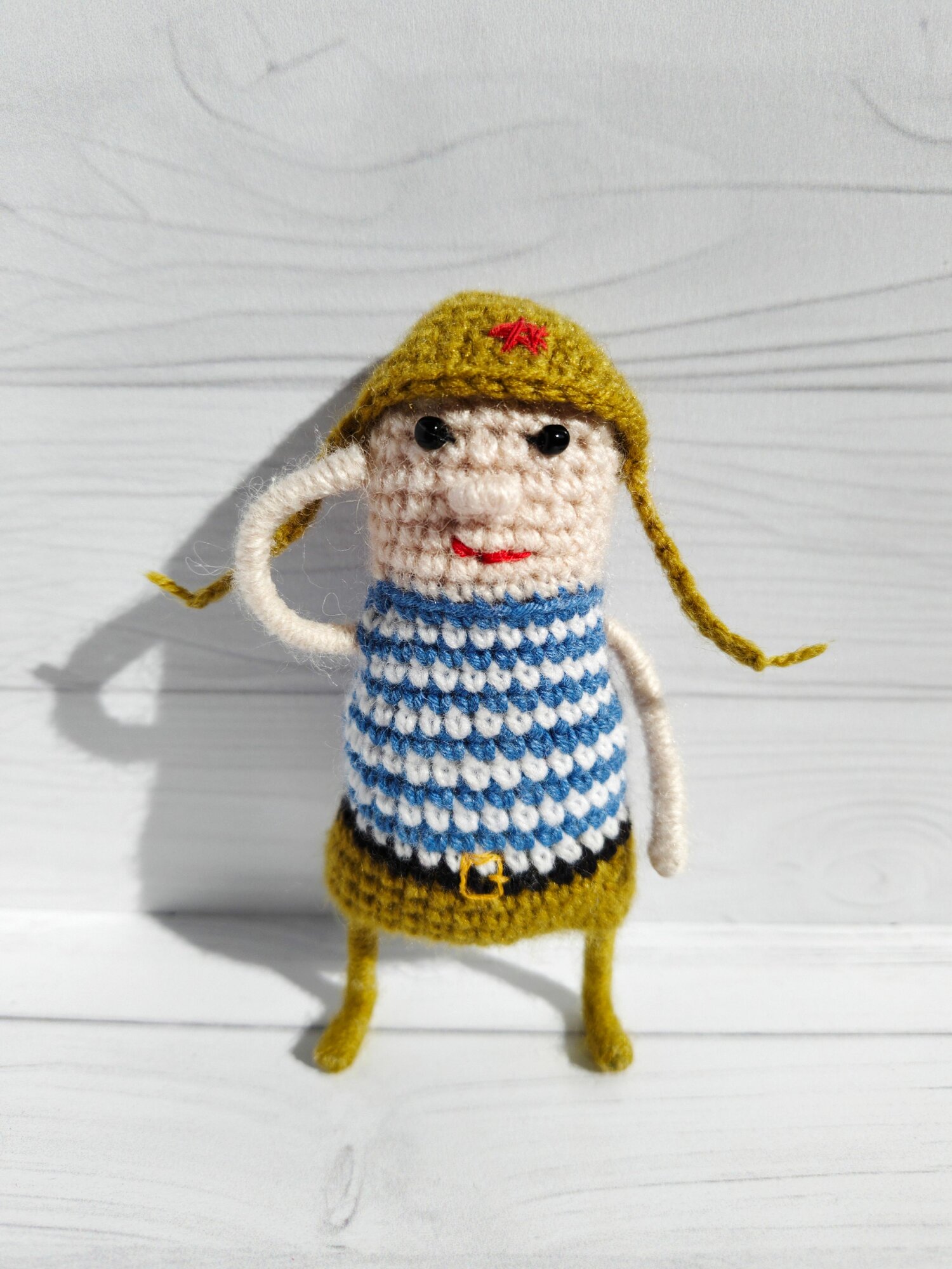 Гнущаяся вязаная игрушка на каркасе ручной работы "Солдат" от бренда ЯнаART - это уникальное и милое дополнение к коллекции мягких игрушек.