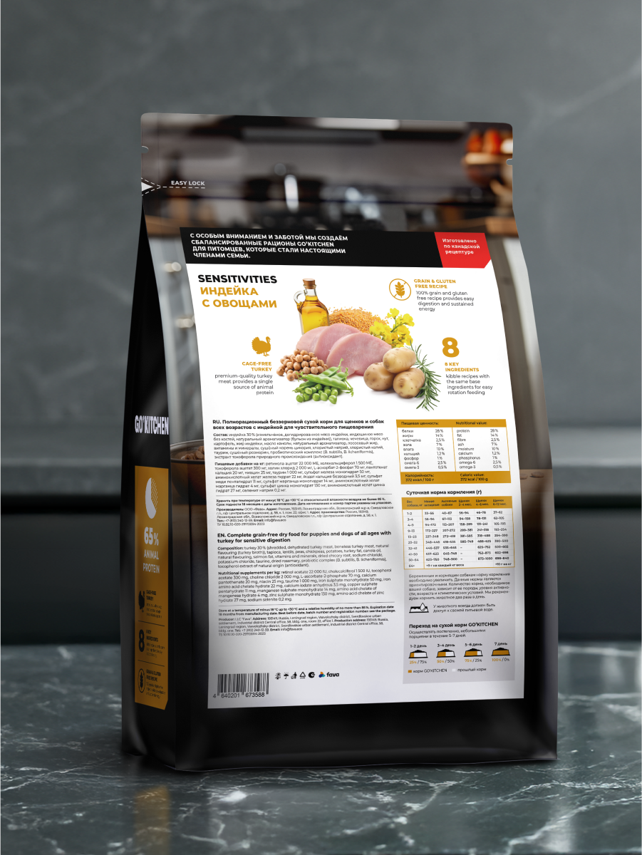 GO'KITCHEN SENSITIVITIES Turkey - беззерновой корм, разработанный специально для собак с чувствительным пищеварением.