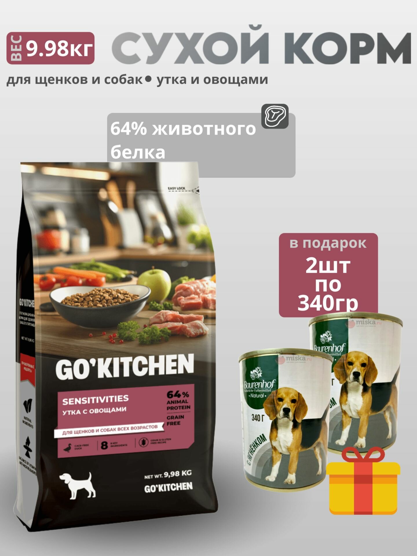 GO! KITCHEN SENSITIVITIES Сухой корм для собак и щенков, Утка с овощами 9.98кг + Подарок Baurenhof Natural, Ягнёнок 2шт по 340гр: сравнение цен, характеристики, фото, актуальное наличие и цены.