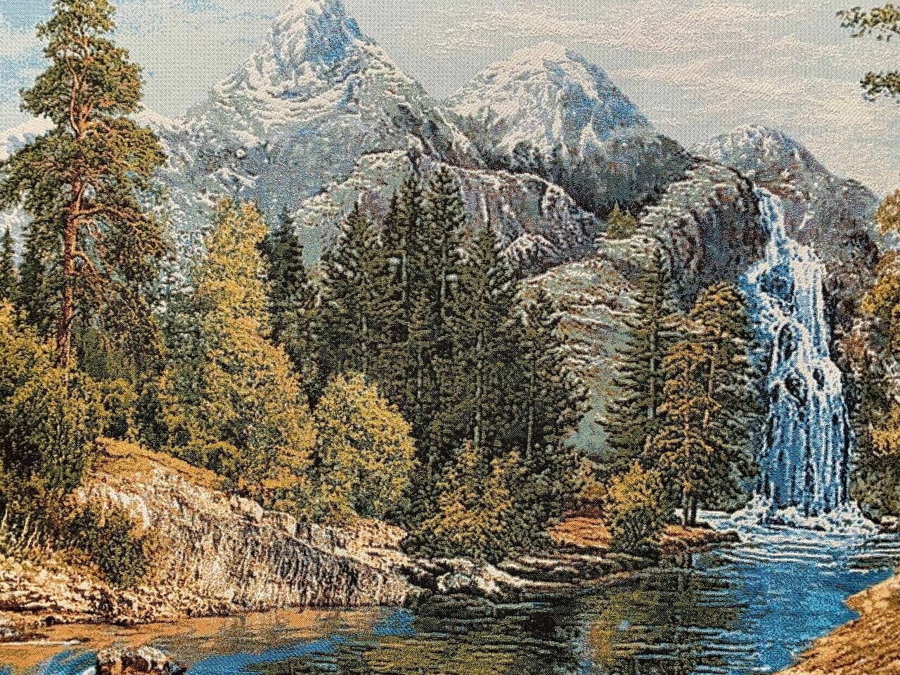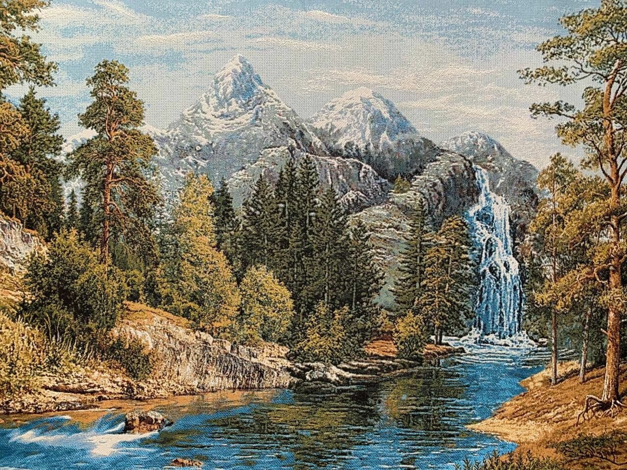 Гобелен в размере 120х70 см. с изображением прекрасного Алтайского горного пейзажа с водопадом придаст любому интерьеру особую атмосферу.