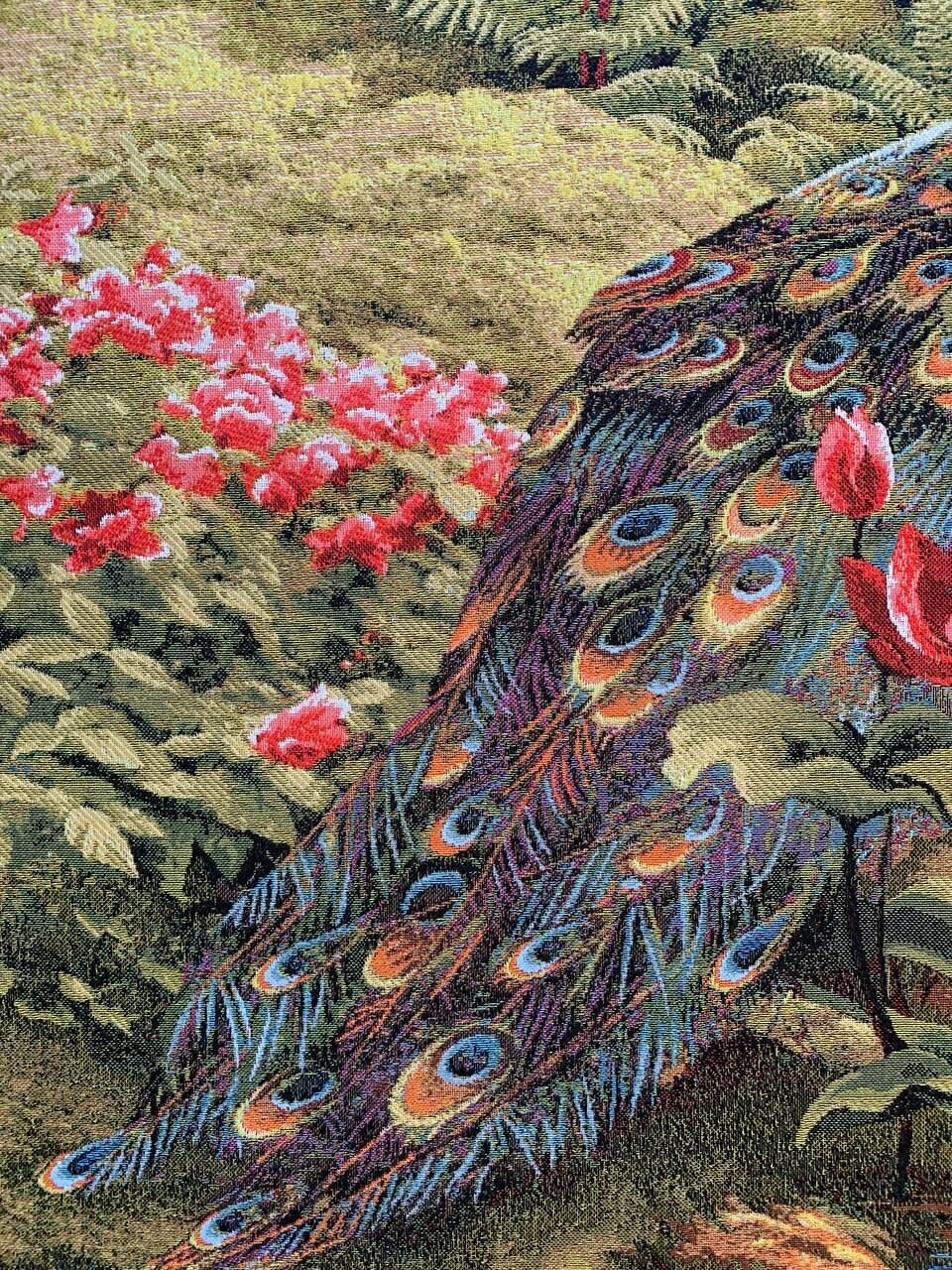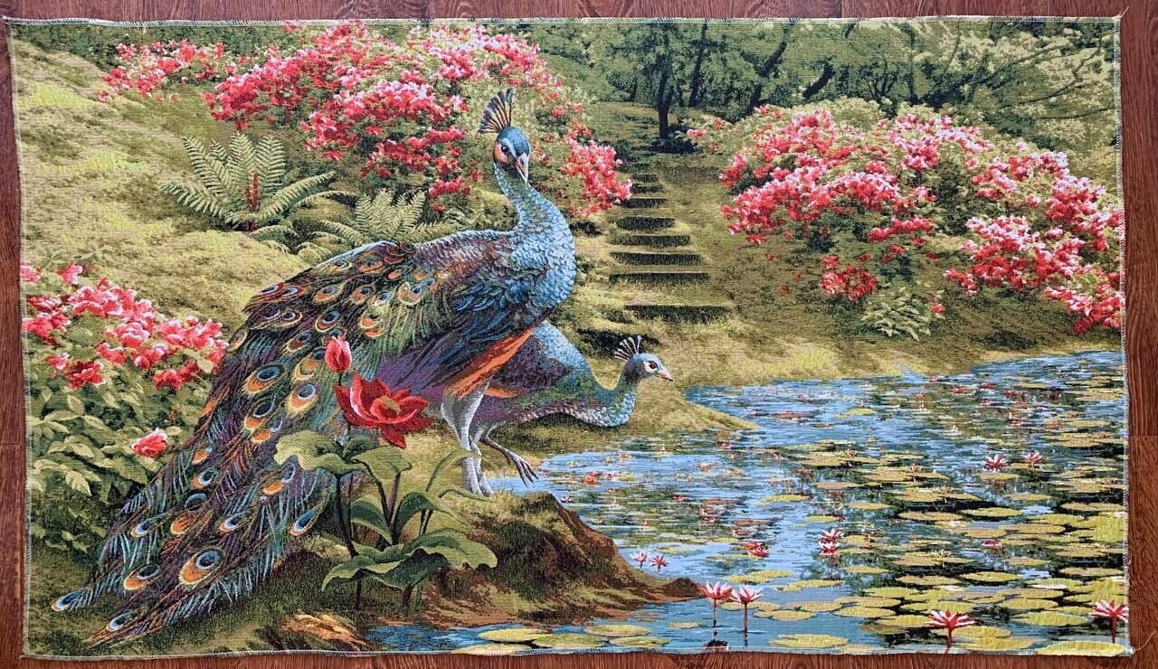 Великолепный гобелен с изображением павлинов, размер: 127х70 см. (+-3см) станет отличным украшением вашего дома! Изображение павлина является талисманом фен-шуй, активизируют энергию славы, успеха и процветания. Этот гобелен подойдет для интерьера в классическом стиле или в стилях фьюжн и ар-деко, а так же может быть красивым и эффектным подарком!