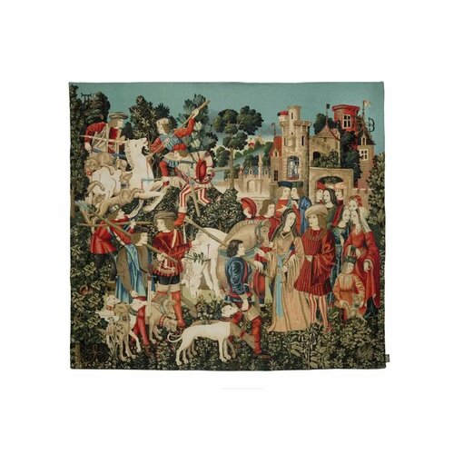 Размер 145х145 см. Большой гобелен панно на подкладке с карманом для карниза Охота на единорога. Размер тканного полотна может отличатся от заявленного +\- 2 %. Из-за цветопередачи устройства, оттенок изделия может незначительно отличатся от фото. Возможно повесить на карниз или рейку использовать как накидку на диван, покрывало. Гобелен на стену - это произведение искусства, которое представляет собой тканое полотно ковёр, выполненное в технике гобелена. Гобелен - это вид декоративно-прикладного искусства, который представляет собой картину с изображением различных сюжетов. Большая гобеленовая картина без рамы может стать отличным украшением интерьера, особенно если вы любите средневековые сюжеты, цветы, пейзаж и природу. Он может стать центральным элементом декора комнаты, привлекая внимание гостей и создавая атмосферу уюта и комфорта. Можно использовать как украшение на стену или подарить маме, сестре, любимой, бабушке на 8 марта, новый год, день рождения, пасху. Ещё больше товаров из России, Бельгии, Франции, Испании, Италии в нашем магазине гобеленов Gobelenbutik.