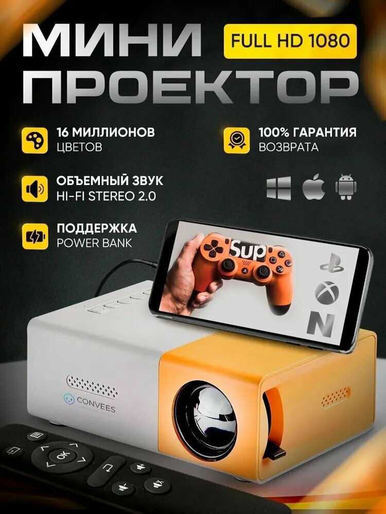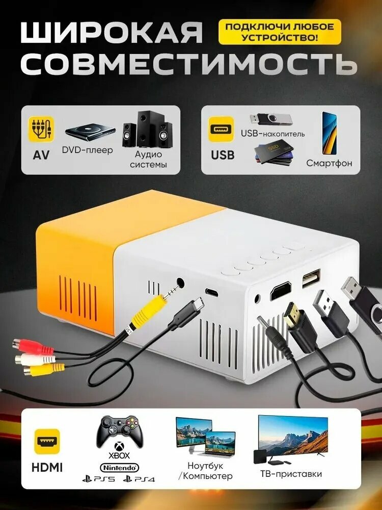 Проектор общий "Luckurood" / Мини проектор для фильмов / LED домашний проектор М8