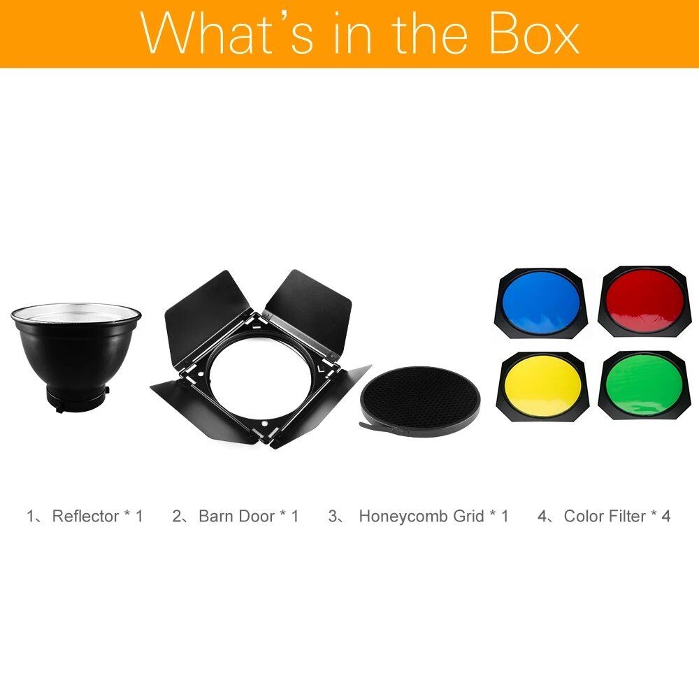 Светодиодный светильник Godox BD-04 Barn Door Honeycomb Grid 4 Color Filter + Bowens Mount Reflector для Studio Flash, BD-04 add Reflector: сравнение цен, характеристики, фото, актуальное наличие и цены.
