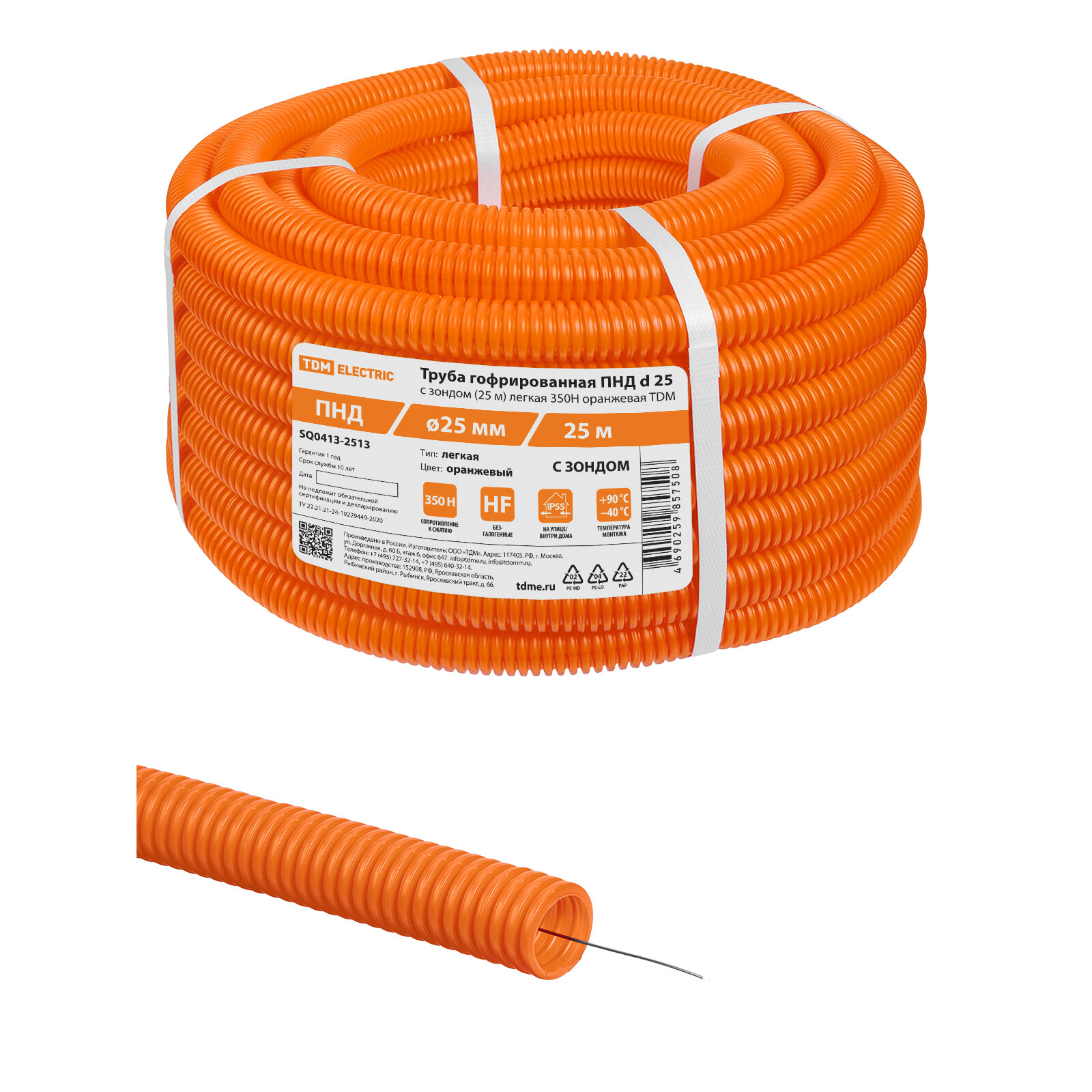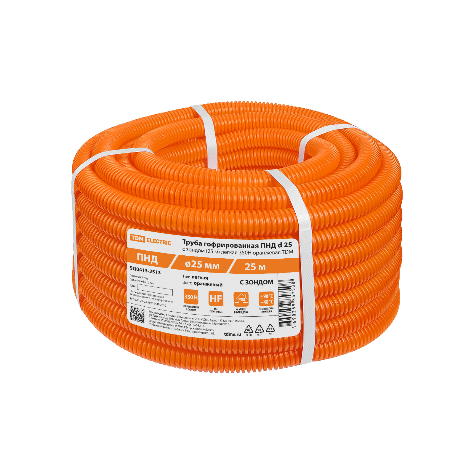 Гофра для кабеля 25мм ПНД с зондом 25 метров легкая оранжевая TDM Electric: сравнение цен, характеристики, фото, актуальное наличие и цены.