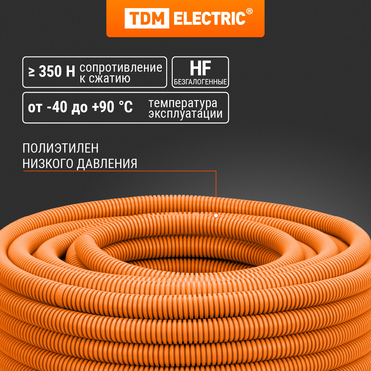 Гофра для кабеля 40мм ПНД с зондом 25 метров легкая оранжевая TDM Electric: сравнение цен, характеристики, фото, актуальное наличие и цены.