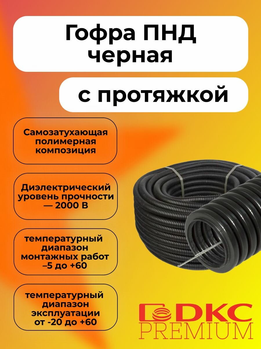 Гофра для кабеля ПНД D 20 мм с протяжкой черная 15 м. DKC Premium.: сравнение цен, характеристики, фото, актуальное наличие и цены.