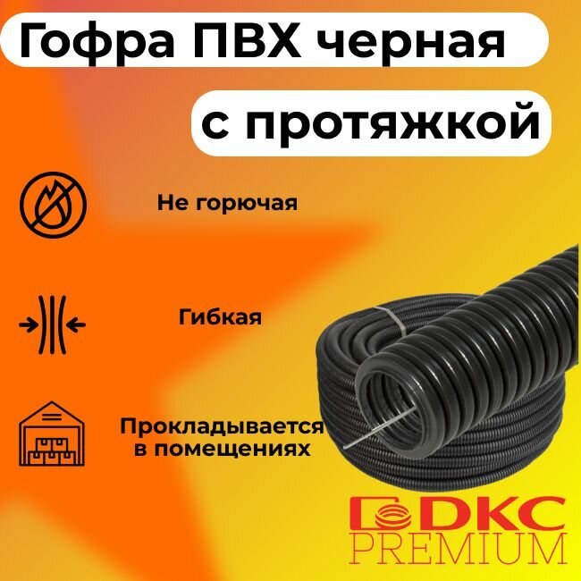 Купить Гофра для кабеля ПНД D20 мм с протяжкой черная 15 м DKC Premium + в подарок 15 клипс для крепления с доставкой по всей России.