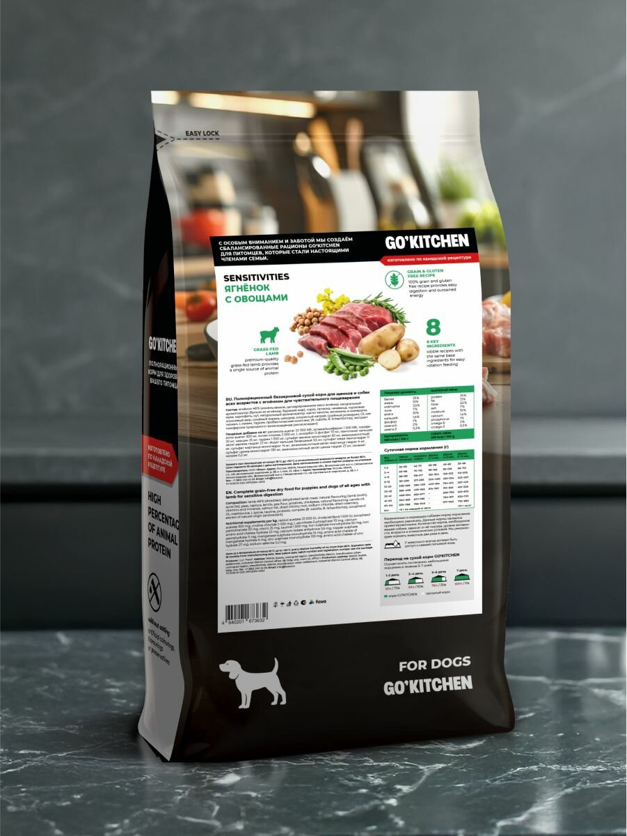 Купить GO’KITCHEN Беззерновой корм для щенков и собак всех возрастов с ягнёнком и овощами для чувствительного пищеварения, SENSITIVITIES Lamb, 18 кг с доставкой по всей России.
