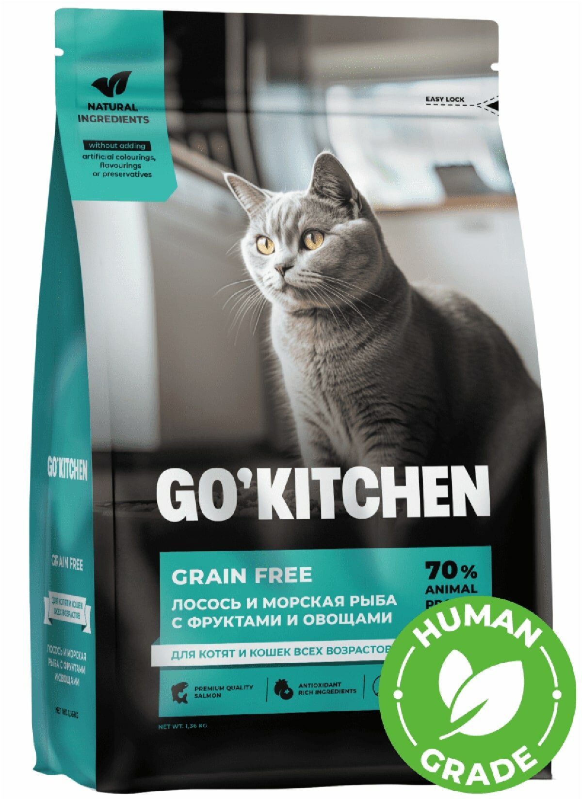 Сухой корм для кошек GO! Kitchen Carnivore Grain Free с лососем и форелью - это повседневный, полностью сбалансированный рацион из высококачественных ингредиентов. Этот корм оптимально подходит для кошек с особыми диетическими потребностями, такими, как чувствительное пищеварение.