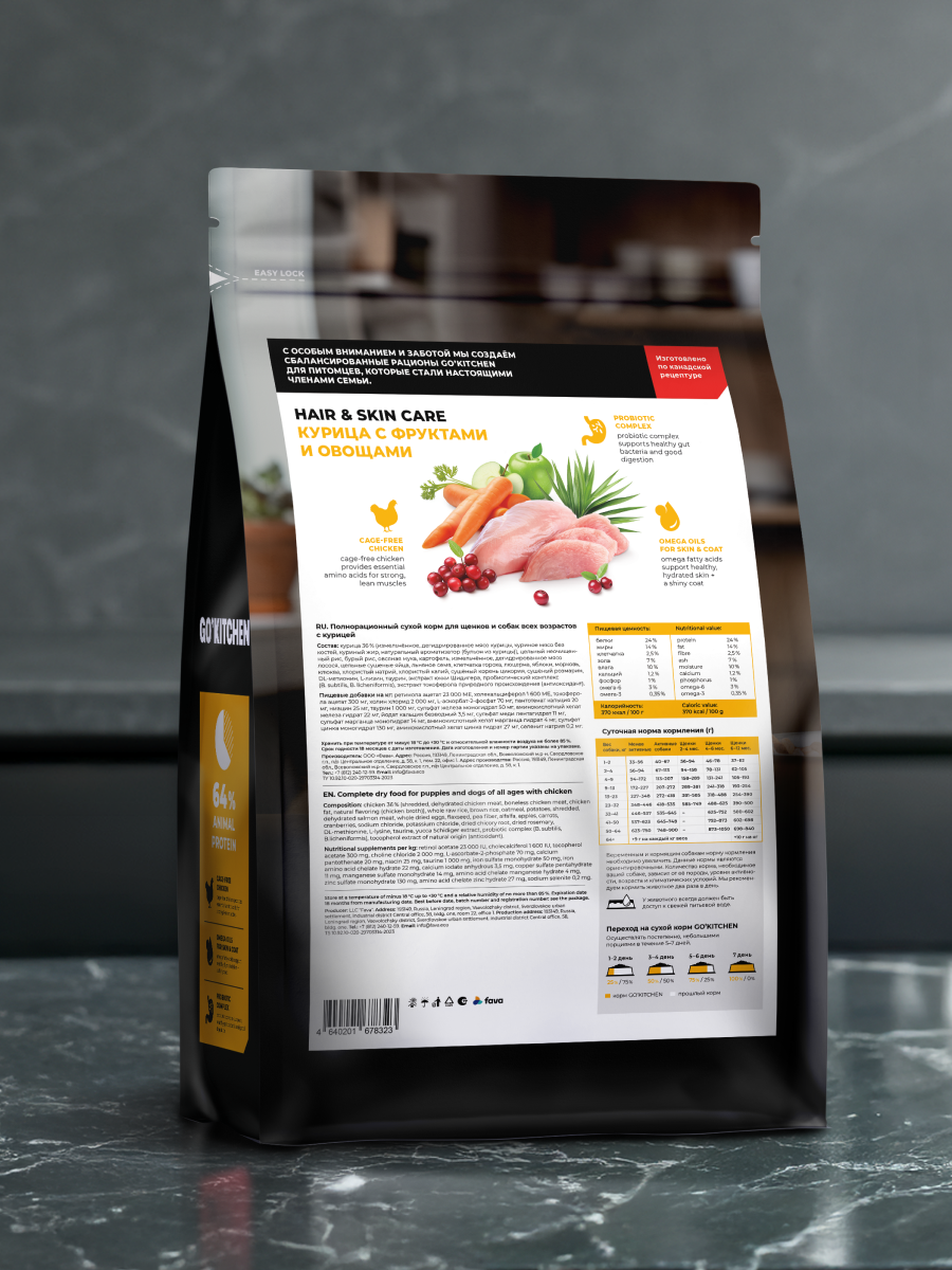 GO’KITCHEN для щенков и собак, со свежей курицей, фруктами и овощами, 5,44 кг