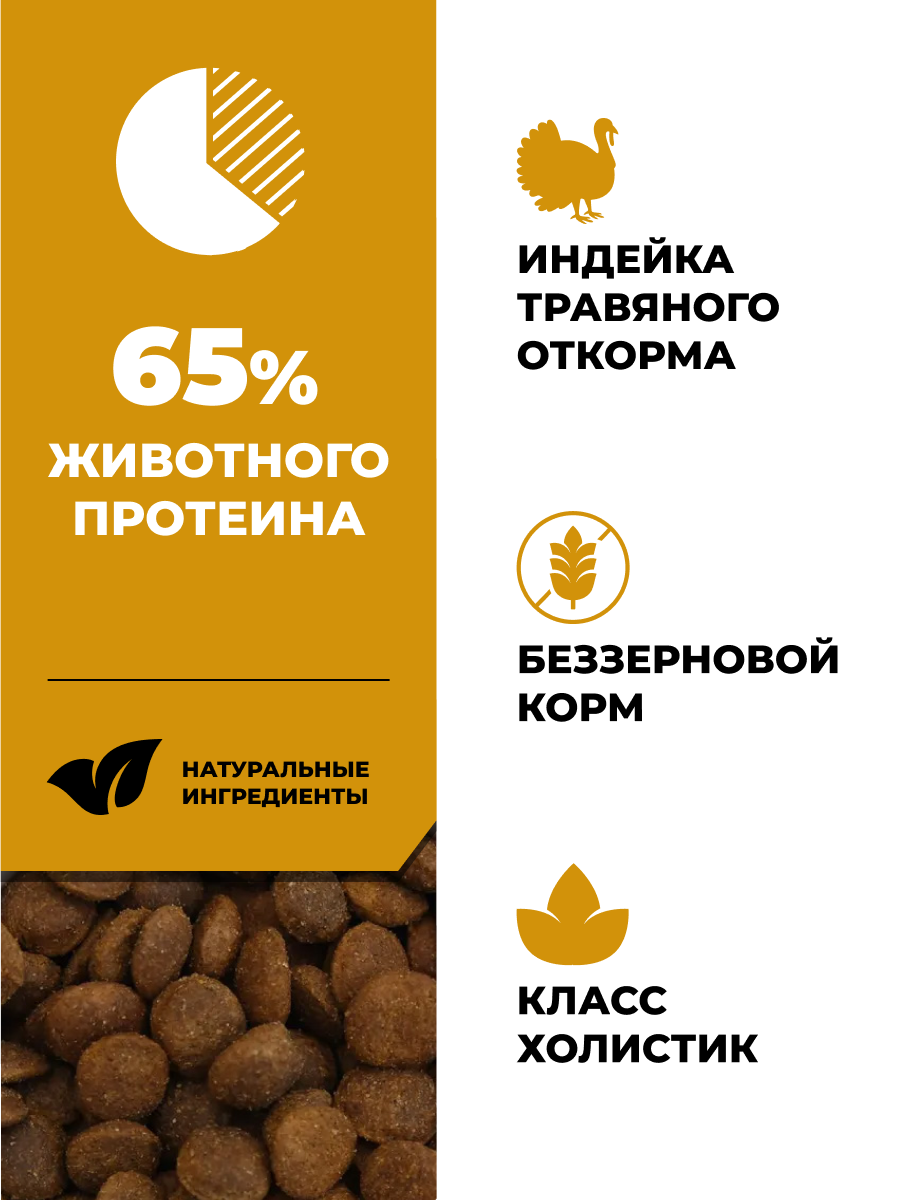 Корма GO! Sensitivities разработаны специально для собак с особыми потребностями в питании, поэтому идеально подходят для животных с чувствительным пищеварением. Все рецепты линейки GO! Sensitivities имеют одинаковые базовые компоненты, благодаря чему вы можете легко переводить питомца с одного корма на другой в пределах линейки без выделения времени на привыкание. Корм содержит только один источник животного белка - мясо индейки. Никакой говядины или курицы. Жизненно необходимые масла Омега поддерживают здоровье кожи и шерсти собаки Не содержит зерно, глютен и картофель Не содержит пшеницу, кукурузу и сою Без субпродуктов, гормонов роста или искусственных добавок Cостав: свежее филе индейки, дегидрированное мясо индейки, тапиока, горох, чечевица, нут, рапсовое масло (источник витамина Е), кокосовое масло (источник витамина Е), натуральный ароматизатор, дикальция фосфат, лососевое масло, хлорид натрия, хлорид калия, сушеный корень цикория, хлорид холина, витамины (витамин А, витамин D3, витамин Е, инозитол, ниацин, L-аскорбил-2-полифосфатов (источник витамина С), D-пантотенат кальция, мононитрат тиамина, бета-каротин, рибофлавин , пиридоксина гидрохлорид, фолиевая кислота, биотин, витамины В12), минералы (цинка протеинат, железа протеинат, меди протеинат, оксид цинка, марганца протеинат, сульфат меди, сульфата железа, йодат кальция, оксид марганца, дрожжи селена), сушеный розмарин. Питательные вещества Количество белки (мин) 24 % жиры (мин) 14 % клетчатка (макс) 4 % влага (макс) 10 % кальций (мин) 1.2 % фосфор (мин) 1 % омега-6 (мин) 2.5 % омега-3 (мин) 0.5 % Калорийность: ME =4098 ккал/кг или 451 ккал/порция. Рекомендации по кормлению Суточная норма может варьироваться в зависимости от возраста, комплекции и уровня активности вашего питомца. Не забывайте своевременно пополнять миску свежей питьевой водой. вес (кг) менее активные активные щенки 1 – 2.3 17-34 20-41 42-85 2.3 – 4.5 34-57 41-69 85-144 4.5 – 9 57-86 69-132 144-173 9 – 13.6 86-143 132-172 173-230 13.6 – 23 143-201 172-229 230-316 23 - 32 201-258 229-344 316-431 32-41 258-315 344-373 431-489 41-50 315-366 373-432 489-601 50-64 366-430 432-516 601-661