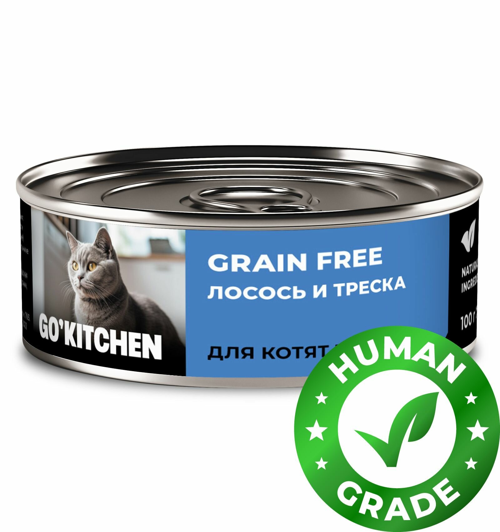 Полнорационный беззерновой влажный корм GO! KITCHEN для котят и кошек с лососем и треской.