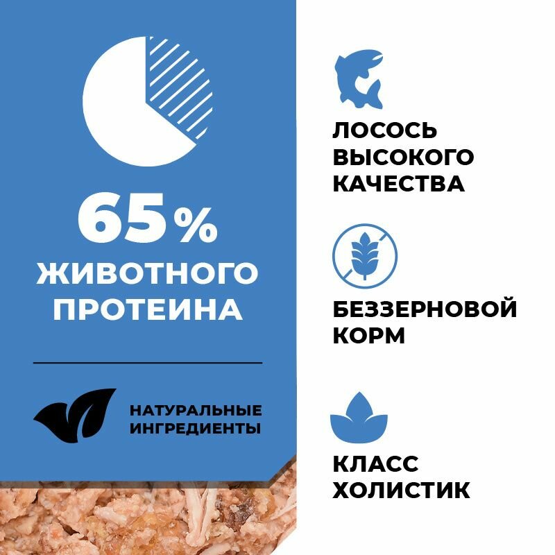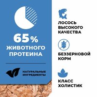 Состав: лосось 50%, бульон из лосося, треска 15%, клюква, льняное семя, подсолнечное масло, яичный порошок.