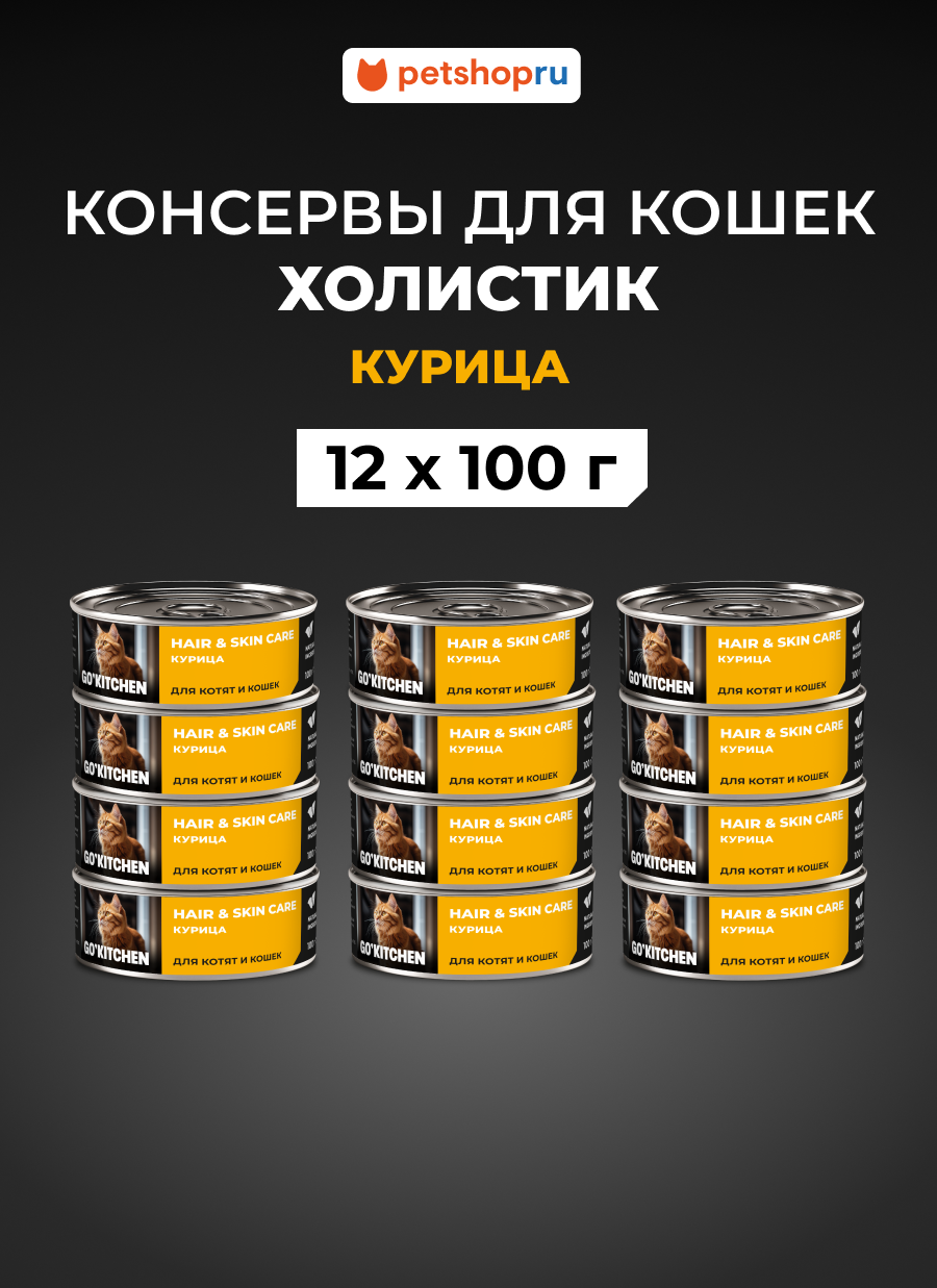 Купить GO’KITCHEN консервы для котят и кошек с курицей, 12шт по 100г Влажный корм с доставкой по всей России.