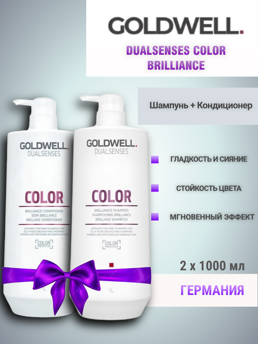 Купить Goldwell Dualsenses Color Brilliance Set — Набор для блеска окрашенных волос (кондиционер 1000мл; шампунь 1000мл) с доставкой по всей России.