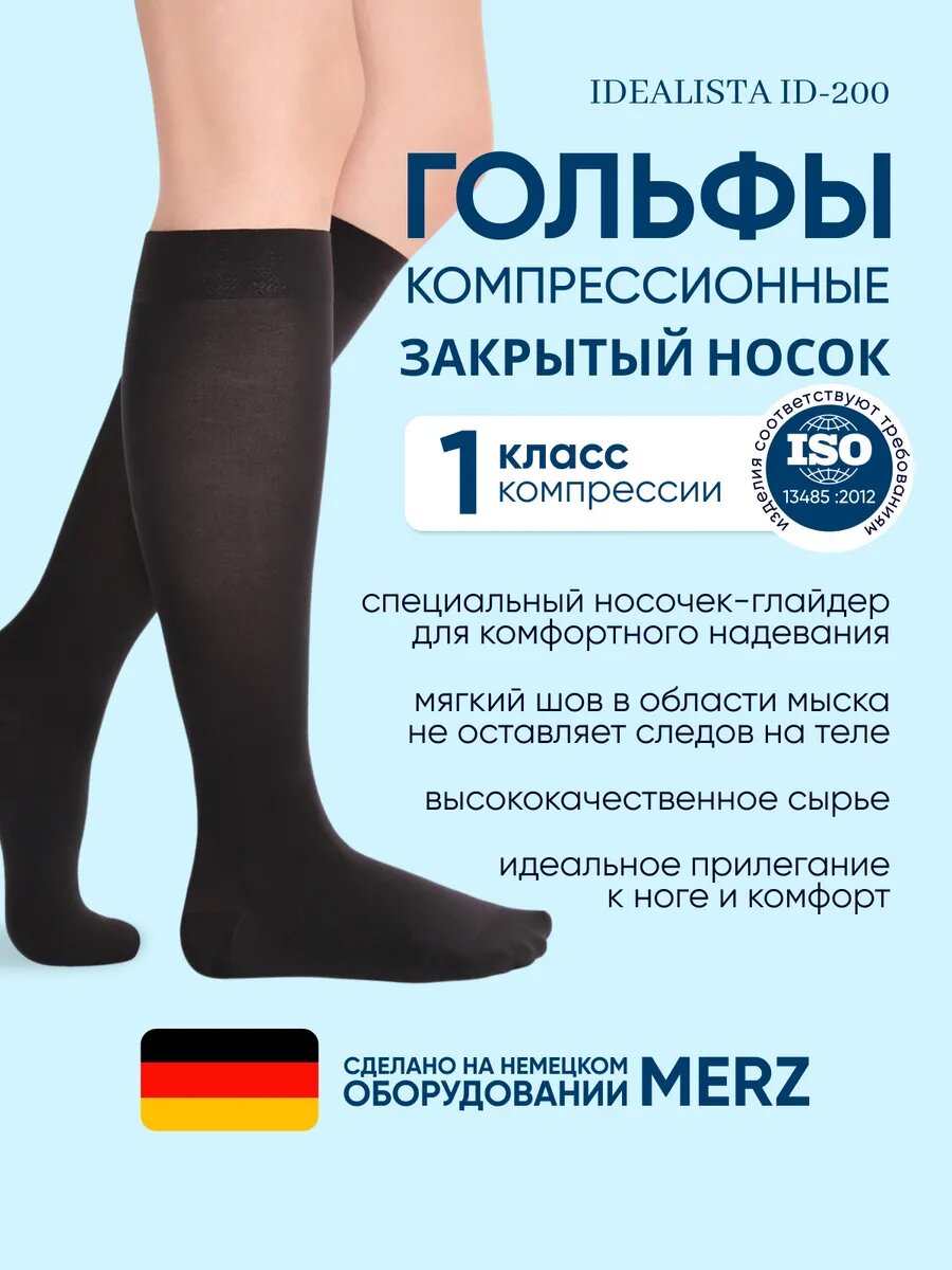 Гольфы компрессионные Idealista ID-200 противоварикозные, 1 класс, Размер L, Normal (35-39 cм), Черный: сравнение цен, характеристики, фото, актуальное наличие и цены.