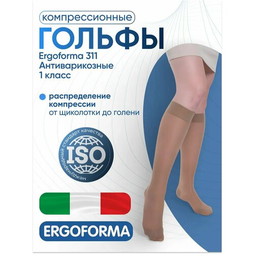 Варикозное расширение вен на ногах – заболевание, которое может возникнуть по разным причинам. У некоторых это заболевание возникает по наследственным причинам, у других это может быть из-за частых физических нагрузок или из-за постоянной сидячей работы. Даже различные травмы и операции могут стать причиной возникновения варикоза. Средств по борьбе с этим тяжелым заболеванием с непредвиденными последствиями достаточно много. Однако одним из самых эффективных являются антиварикозные гольфы Ergoforma 311 первого класса компрессии. Выполнены они из специального трикотажа, который создает по поверхности ног различную компрессию. Гольфы этого класса назначаются тем, у кого варикозная болезнь в начальной стадии проявления.