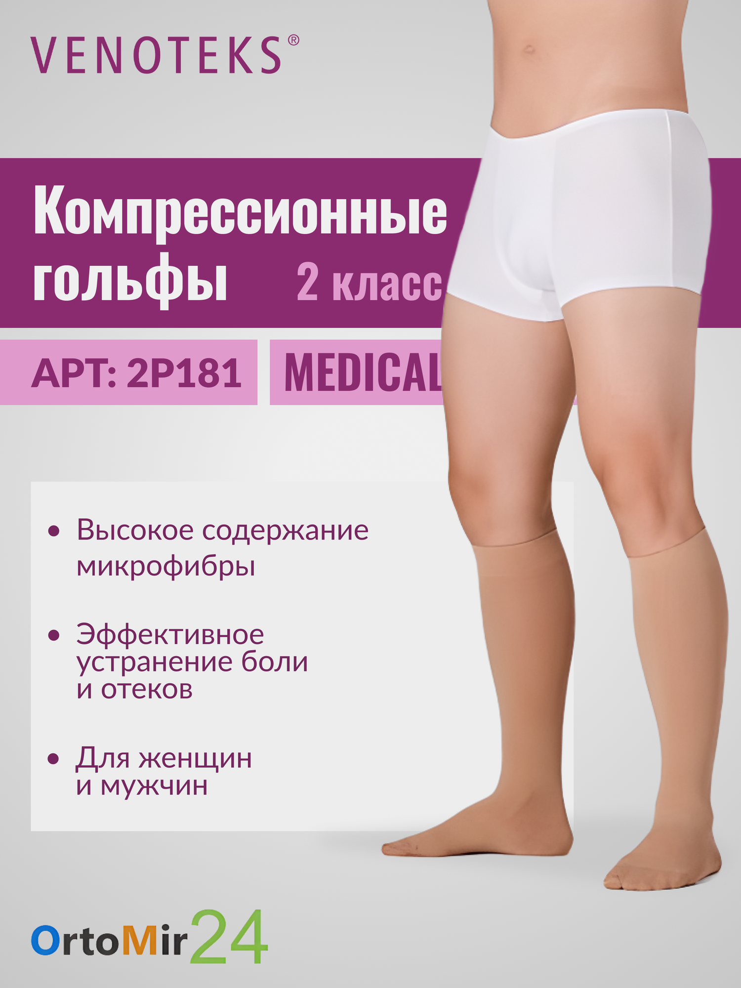 Гольфы 2P181 VENOTEKS MEDICAL 2 класс, Бежевый, Короткая, размер 4: сравнение цен, характеристики, фото, актуальное наличие и цены.