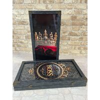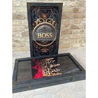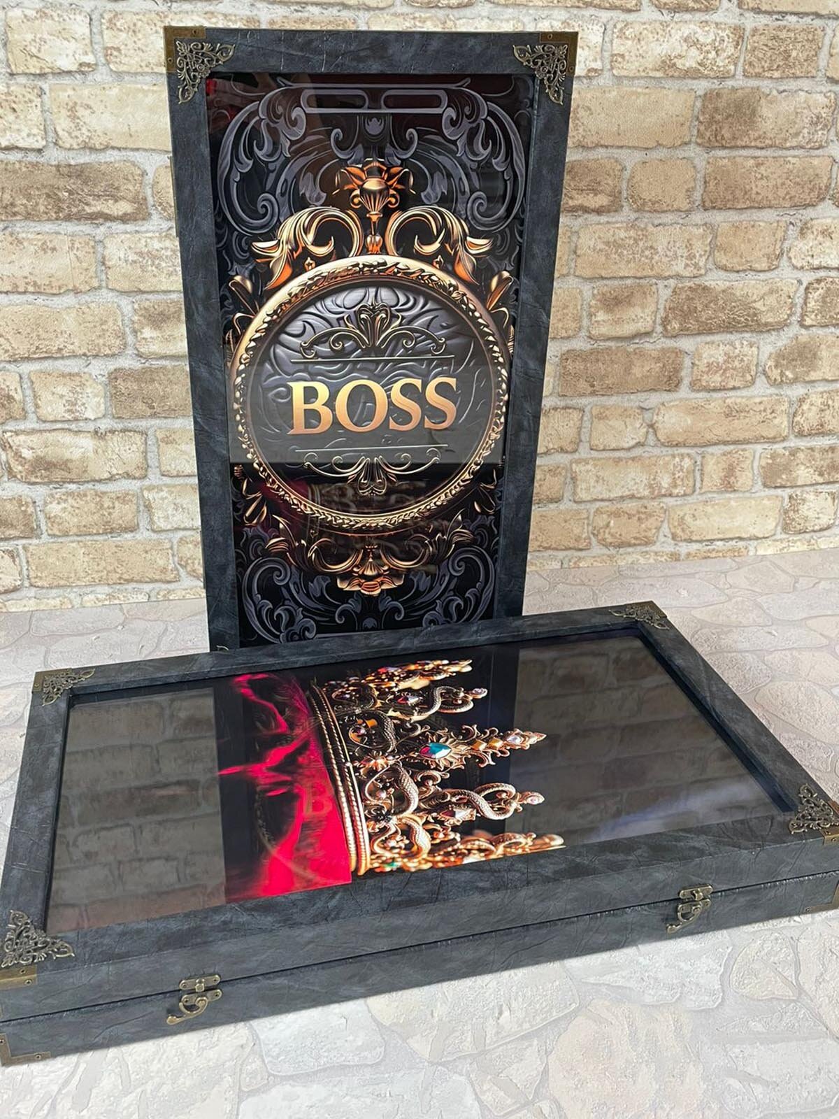 Купить Голографические нарды «Корона BOSS» RS, большие нарды меняющие изображения, размер 60 на 60 см, стеклянное игровое поле с доставкой по всей России.