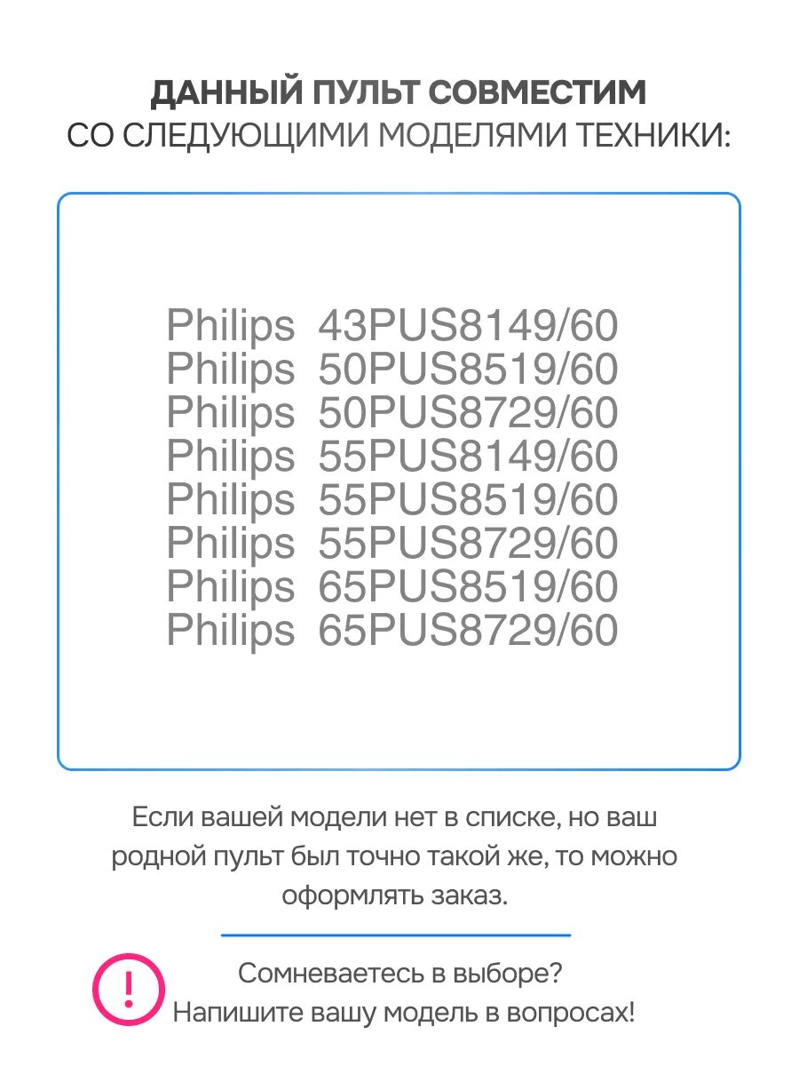 Пульт ДУ 398GM10BEPHN0058SY для телевизора Philips является оригинальным пультом, предназначенным специально для телевизоров Philips. Он обеспечивает удобное управление громкостью, выбором каналов и доступом к умным функциям телевизора. Пульт поддерживает передачу команд как через Bluetooth, так и через ИК-датчик, позволяя использовать различные функции, включая голосовой поиск, после сопряжения с телевизором. Сопряжение достигается путем выполнения определенных шагов, например, нажатия кнопок HOME + Назад для успешного соединения. Также возможно повторное сопряжение, если первоначальное было нарушено. Важно убедиться в совместимости пульта с конкретной моделью телевизора перед покупкой Пульт ДУ 398GM10BEPHN0058SY подходит к следующим моделям телевизоров Philips: