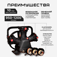 Купить Голова на компрессор ATMOSFERAAIR W-3065, для поршневого компрессора, 650л/мин, 10Бар с доставкой по всей России.