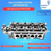 ГБЦ головка блока в сборе с распредвалами, клапанами, гидрокомпенсаторами, для автомобилей: Хендай Акцент 1.5, Хендай Гетц 1.4 и 1.6, Киа Рио 2 с двигателем 1.4, Хендай Элантра с двигателем 1.6, Киа Церато 1. Подходит для двигателей: G4EC, G4EE, G4ED (1.4/1.5/1.6) на 2001, 2002, 2003, 2004, 2005, 2006, 2007, 2008, 2009, 2010, 2011 год. Новая ГБЦ с гарантией. Производство: Южная Корея, фирма GMP. Гарантия на ГБЦ 1 год или 20 000 км.