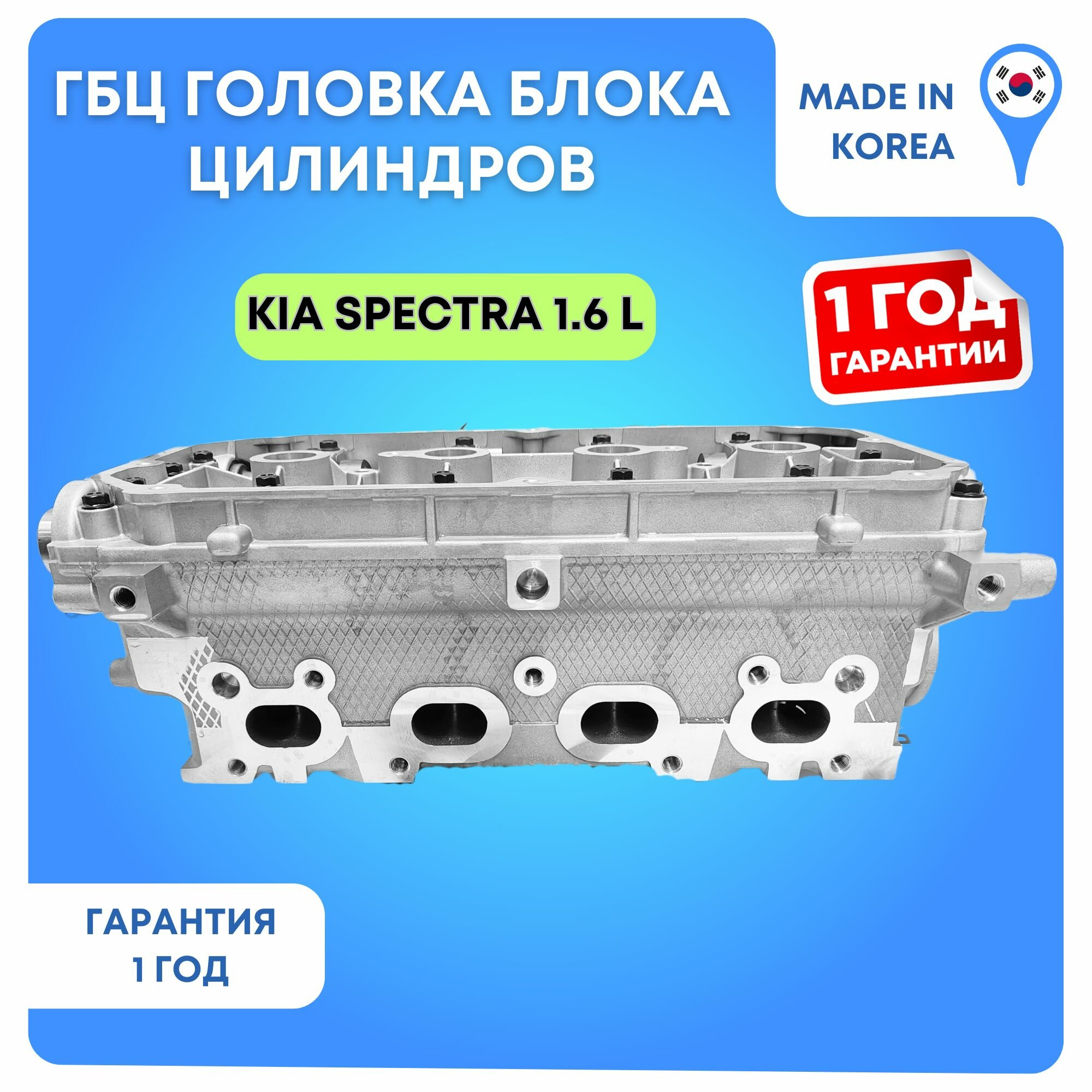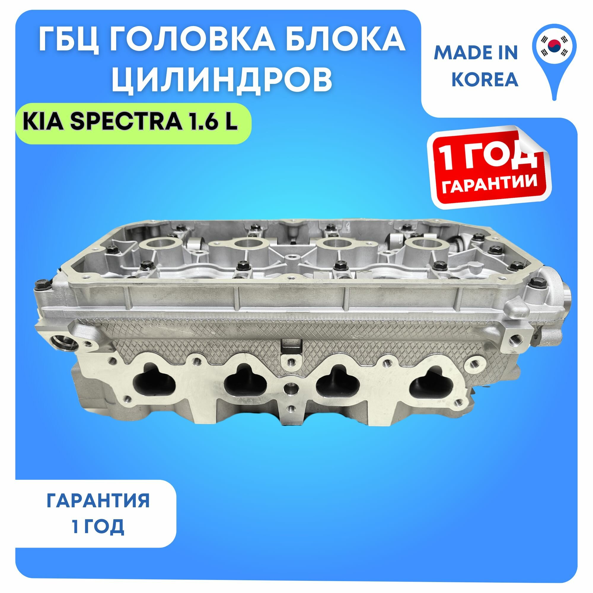 ГБЦ головка блока для автомобилей: Киа Спектра 1.6 и Киа Рио в первом кузове с двигателем 1.5 в сборе с клапанами, распредвалами, гидрокомпенсаторами. 2001, 2002, 2003, 2004, 2005, 2006, 2007, 2008, 2009, 2010, 2011 год. Новая ГБЦ в сборе с гарантией. Производство: Южная Корея, фирма GMP. Гарантия на ГБЦ 1 год или 20000 км. Подходит для автомобилей: Kia Spectra 1.5 и 1.6 (Киа Спектра), Kia Rio 1 - 1.5 и 1.6 (Киа Рио 2).